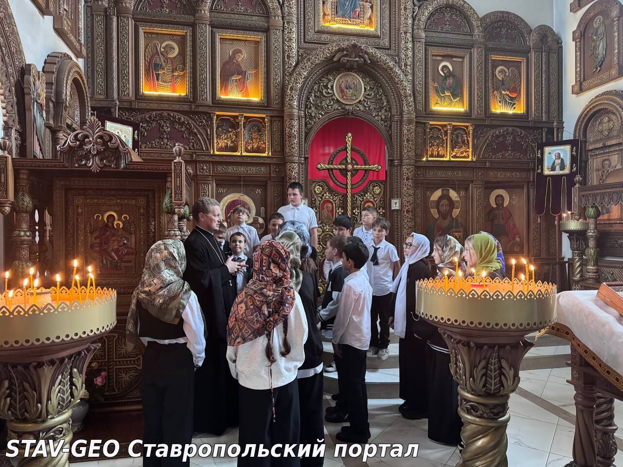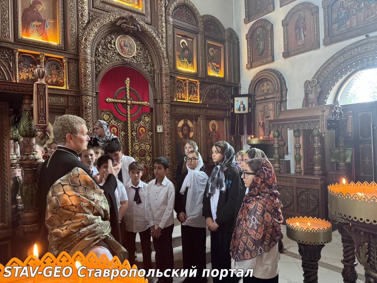 Школьников радушно встретил настоятель храма – иерей Василий Басаков. Батюшка рассказал детям о том, что Артемиевский храм был заложен в 2016 году, и уже в 2018-ом митрополит Ставропольский и Невинномысский Кирилл совершил чин великого освящения. Примечательно, что строился храм в чистом поле, положив начало микрорайону Гармония. В старину так и было: сначала храм, а потом вокруг него город или село.