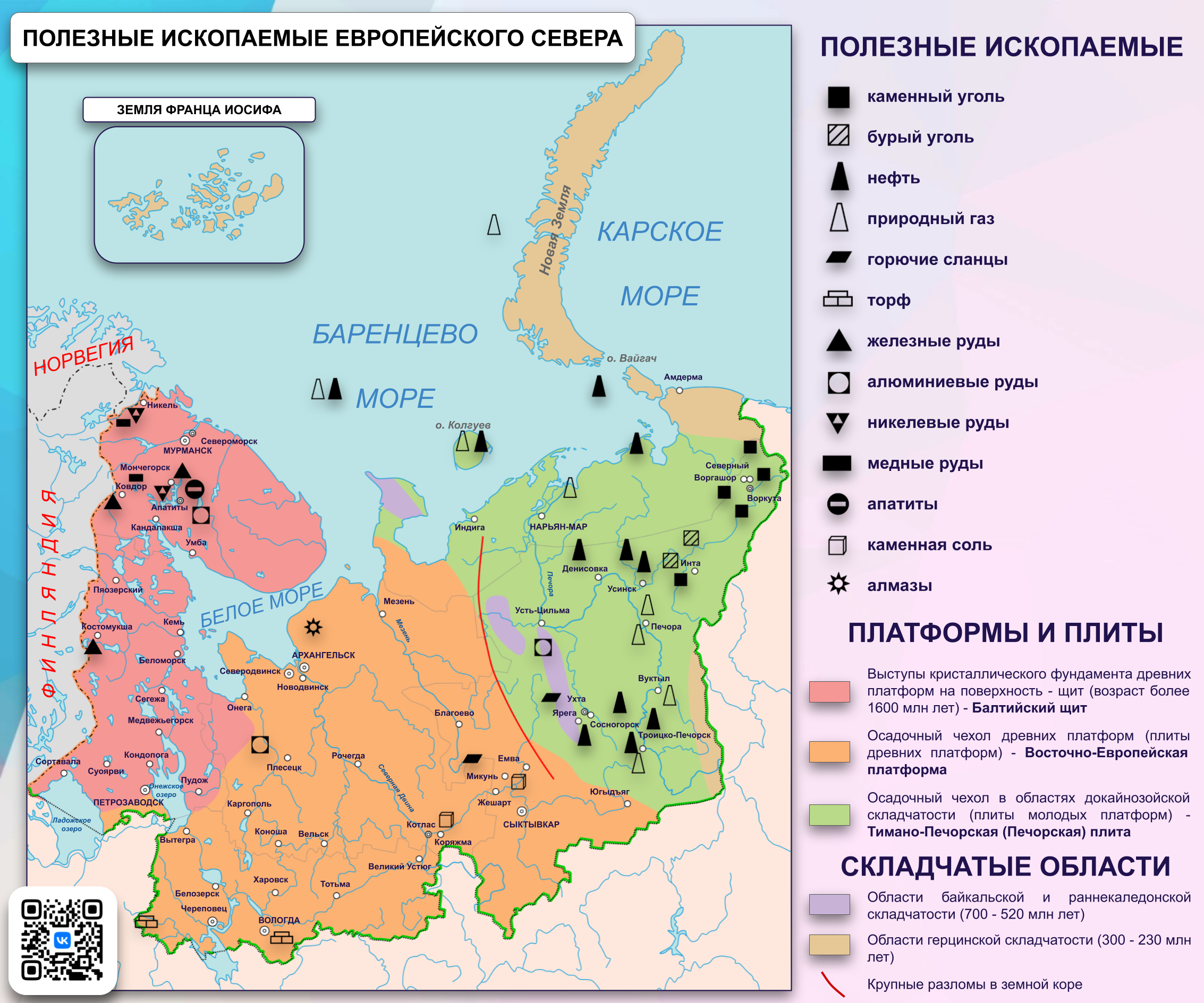 Карта Полезные ископаемые Европейского Севера | |