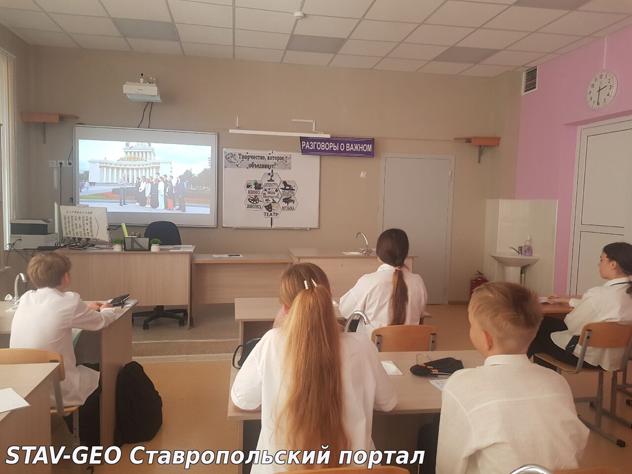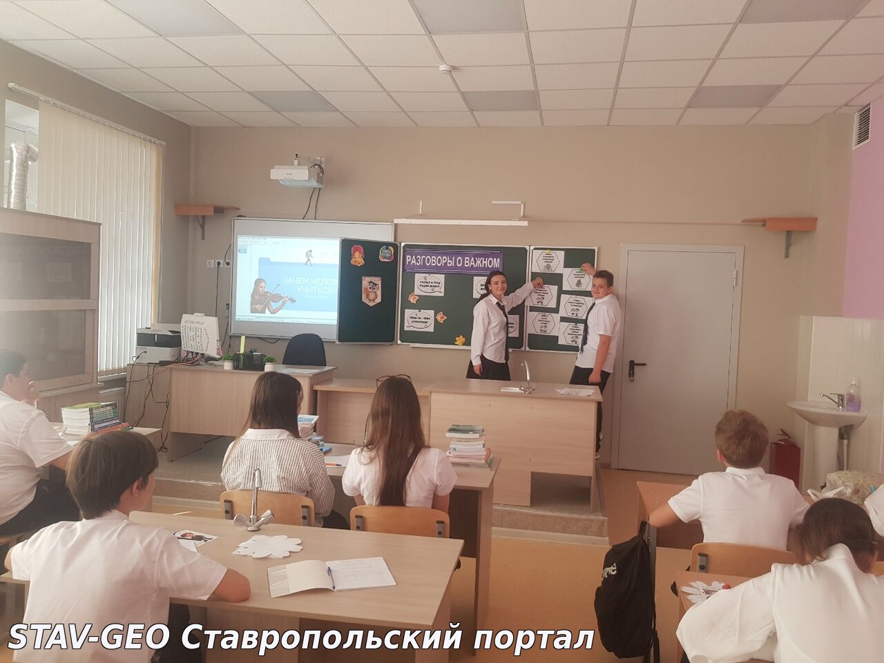 Утро 15 сентября в нашей школе началось с торжественной линейки, вноса знамен Российской Федерации, Ставропольского края и Шпаковского муниципального округа и исполнения гимна Российской Федерации.