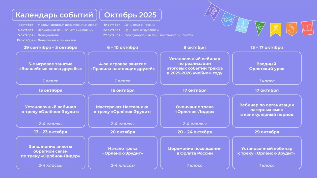 У обучающихся 2-4-х классов подходит к концу трек «Орлёнок – Лидер», и состоится установочный вебинар для педагогов по треку «Орлёнок – Эрудит».