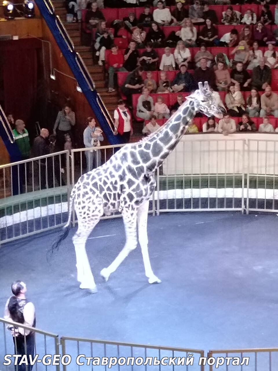 Семь метров красоты и грации покорили всех зрителей, особенно, когда чудо-артист танцевал вальс. Высокий рост не помешал этому обаятельному животному делать уникальные трюки.