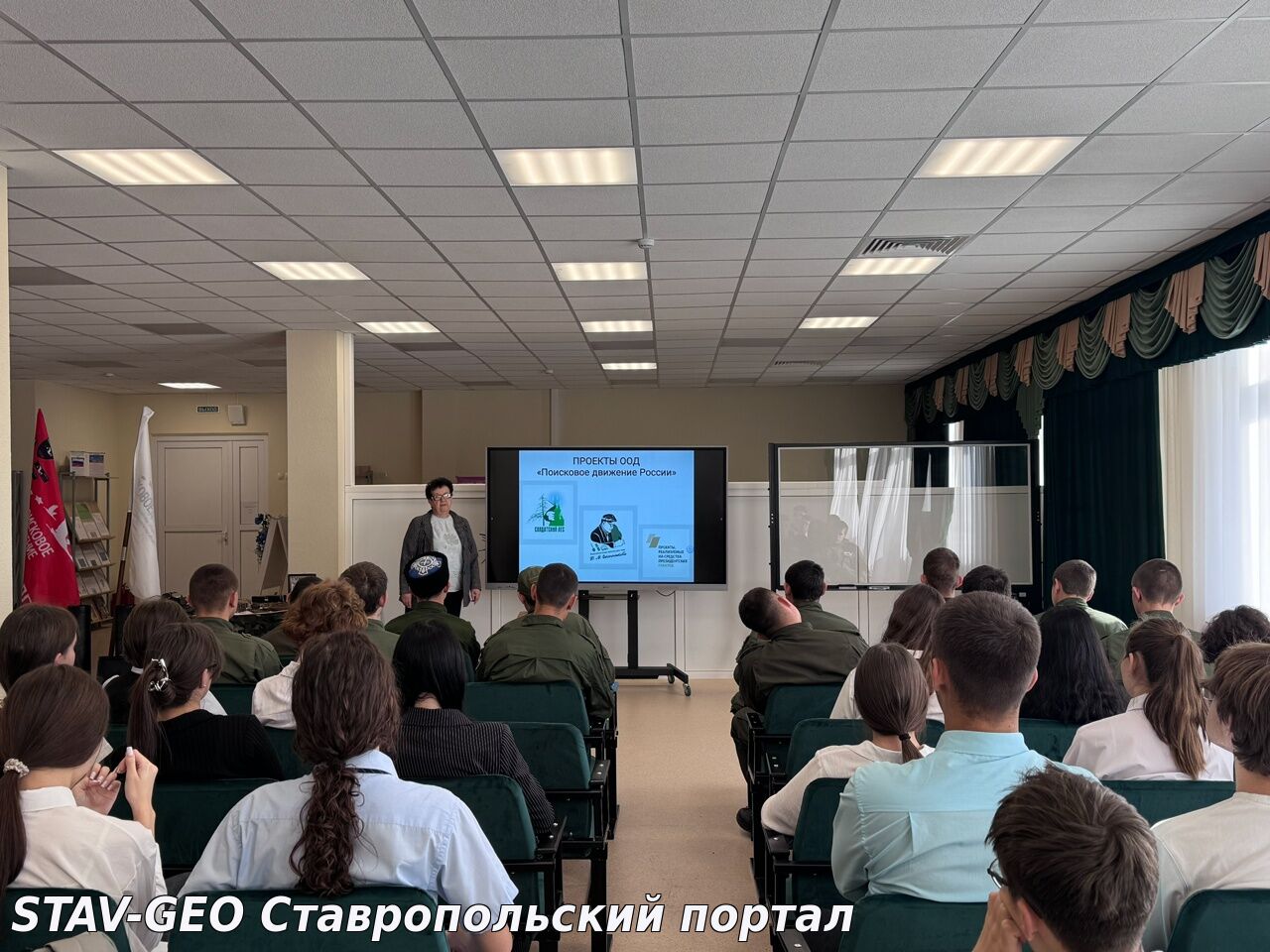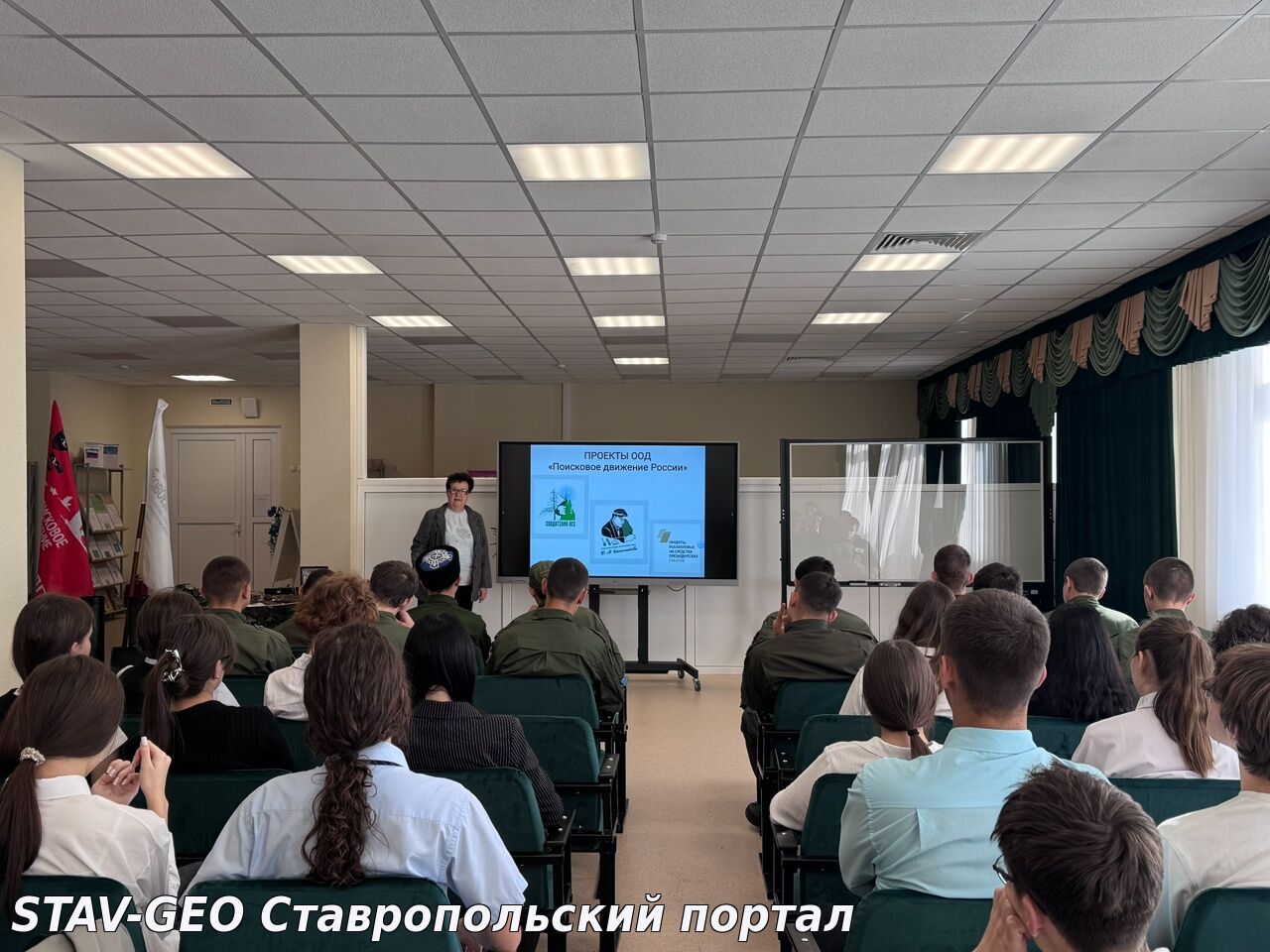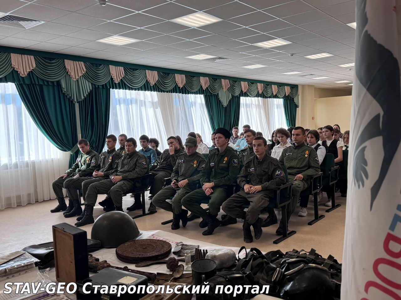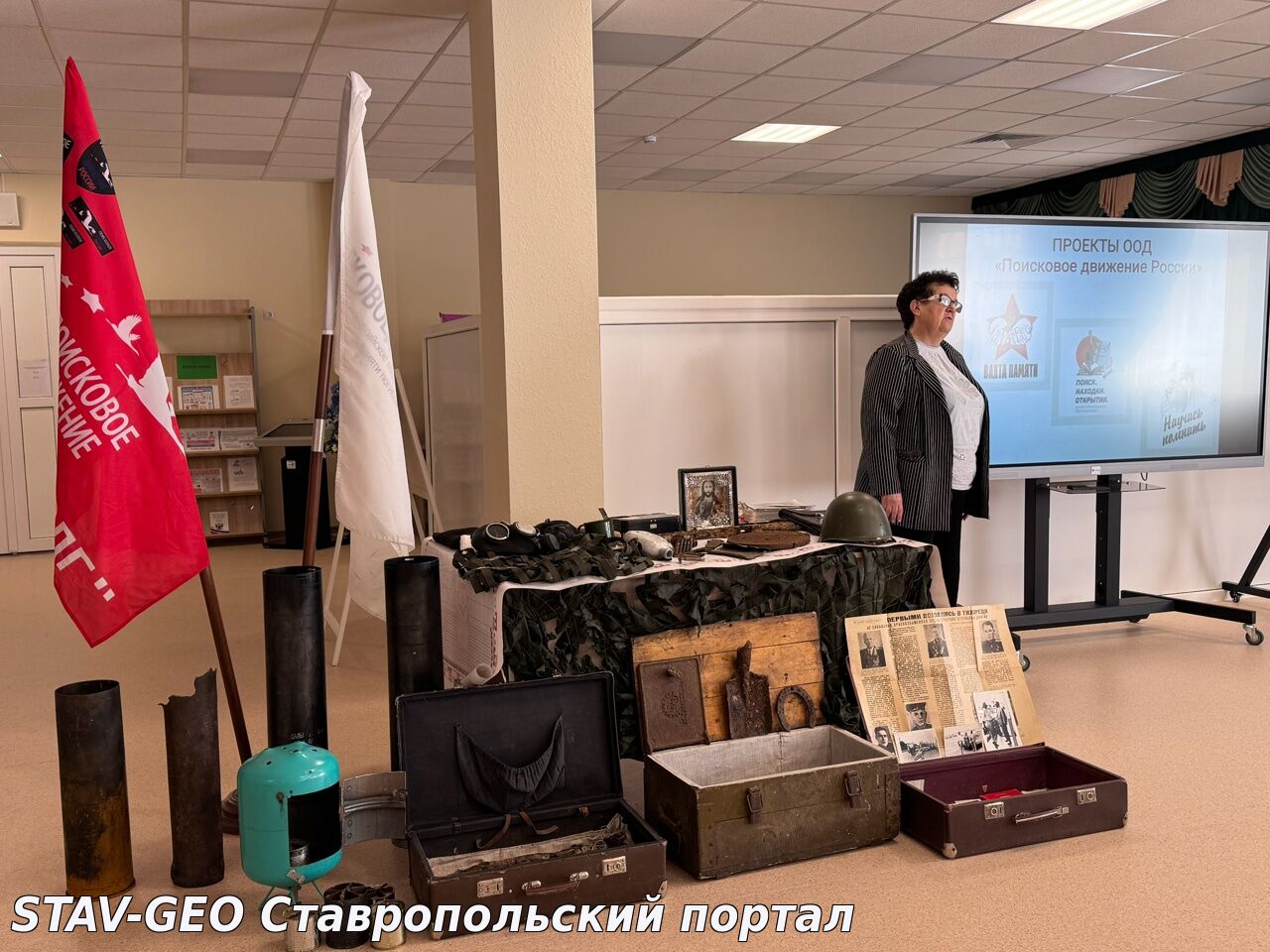 В рамках реализации проекта по созданию школьного музея "Подвигу жить" для обучающихся 8-9 классов Свириденко Вера Алексеевна и студенты-поисковики отряда "Долг" ГБПОУ МТ имени казачьего генерала С.С. Николаева провели экскурсию по экспозиции интерактивного передвижного музея "Музей в чемодане и снарядном ящике".