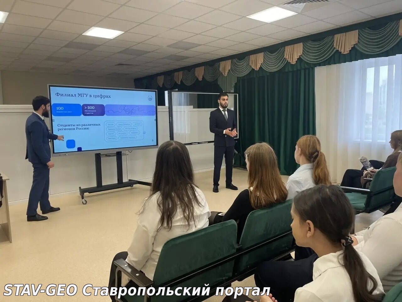В рамках профориентационной работы в школе сегодня прошла встреча обучающихся 9-10 классов с представителями филиала МГУ в городе Грозный.