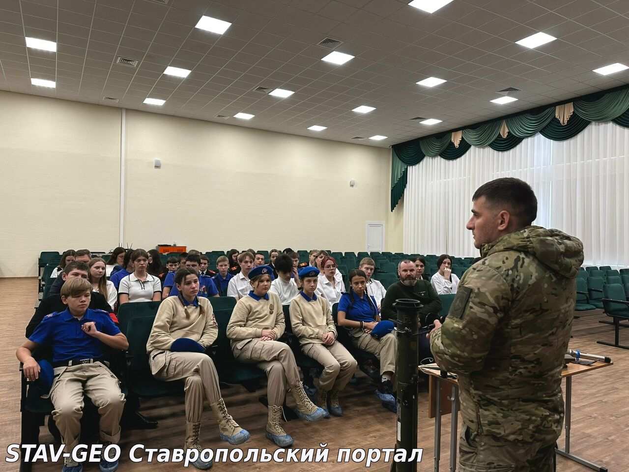 Сегодня ученики образовательных организаций г.Михайловска собрались в 25 школе для встречи с настоящим героем и защитником Родины — бойцом с позывным «Сникерс», награждённым государственной наградой РФ «За отвагу».