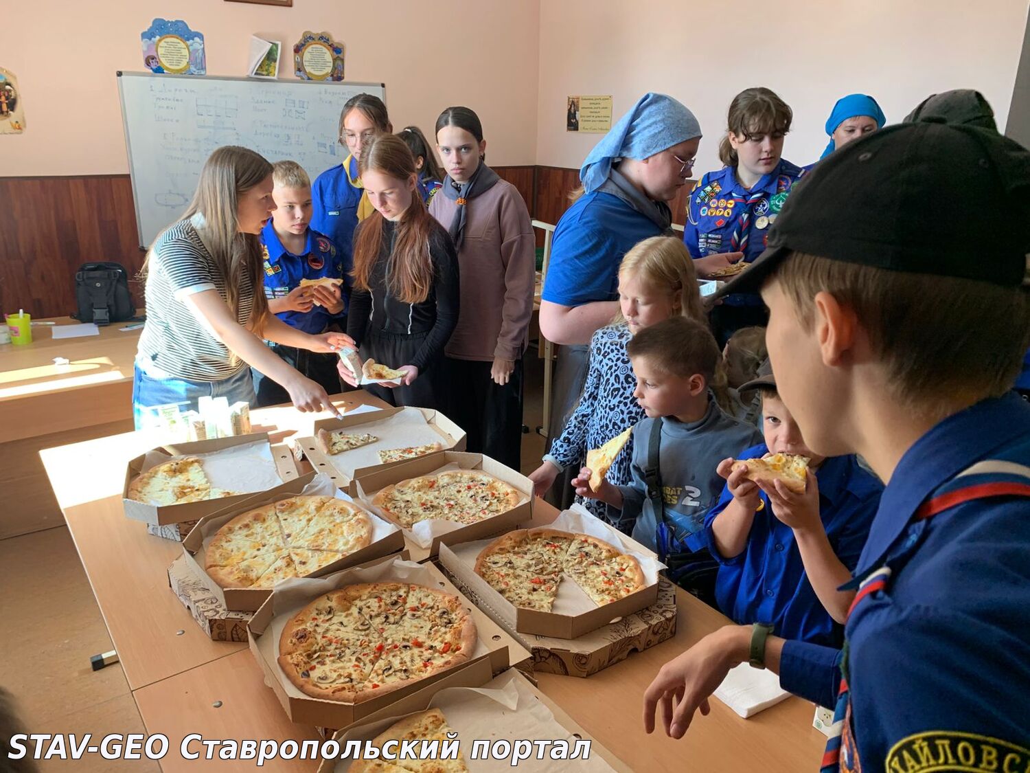 Общее причастие, построение и пение государственного гимна, урок пения и занятия по Закону Божию в двух группах. В честь Причастия сюрприз - пицца И в завершении увлекательная беседа с духовником отцом Василием. Слава Богу за всё! Поделиться в:Следующий