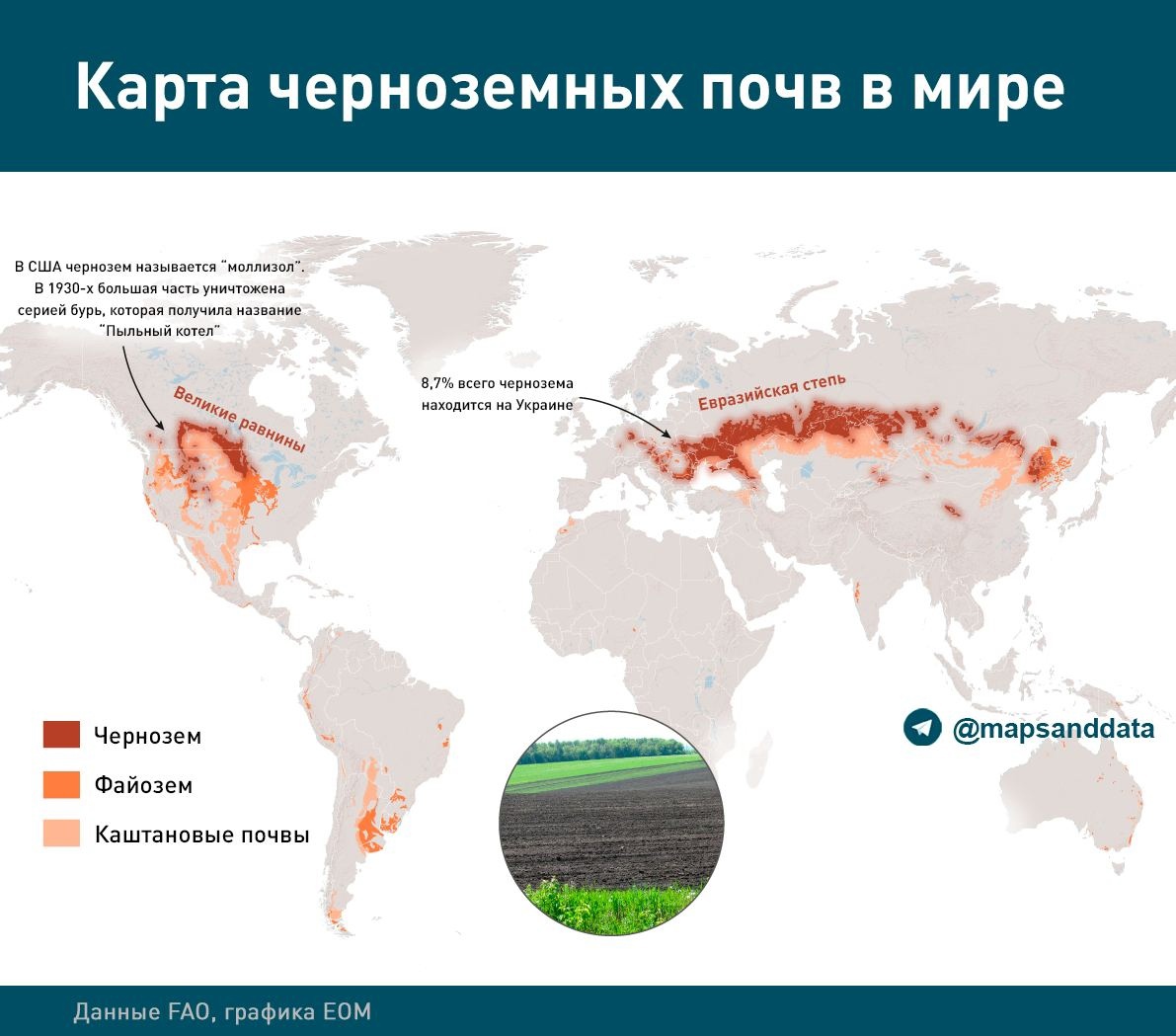Карта черноземных почв в мире