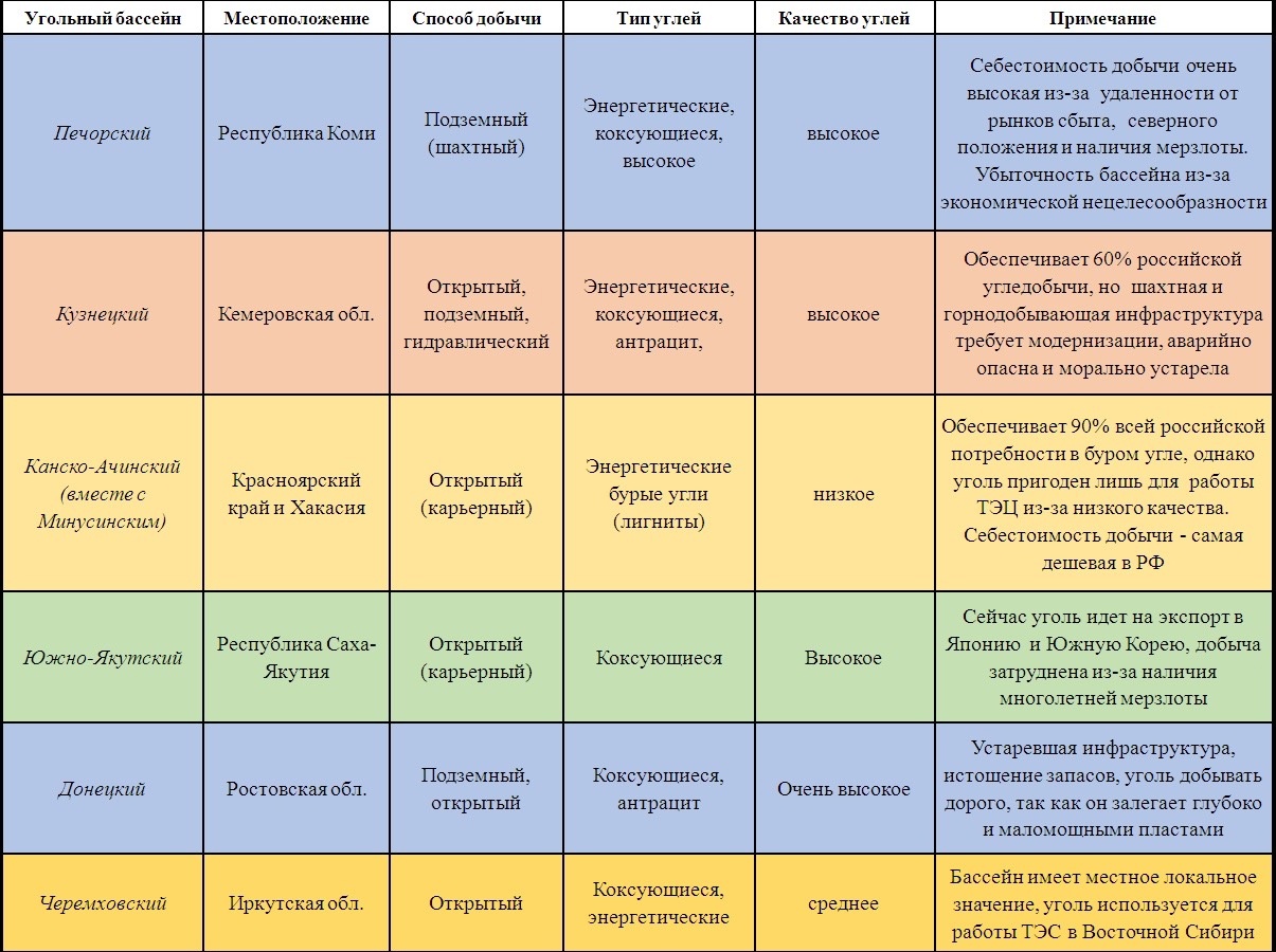 Характеристика основных угольных бассейнов России