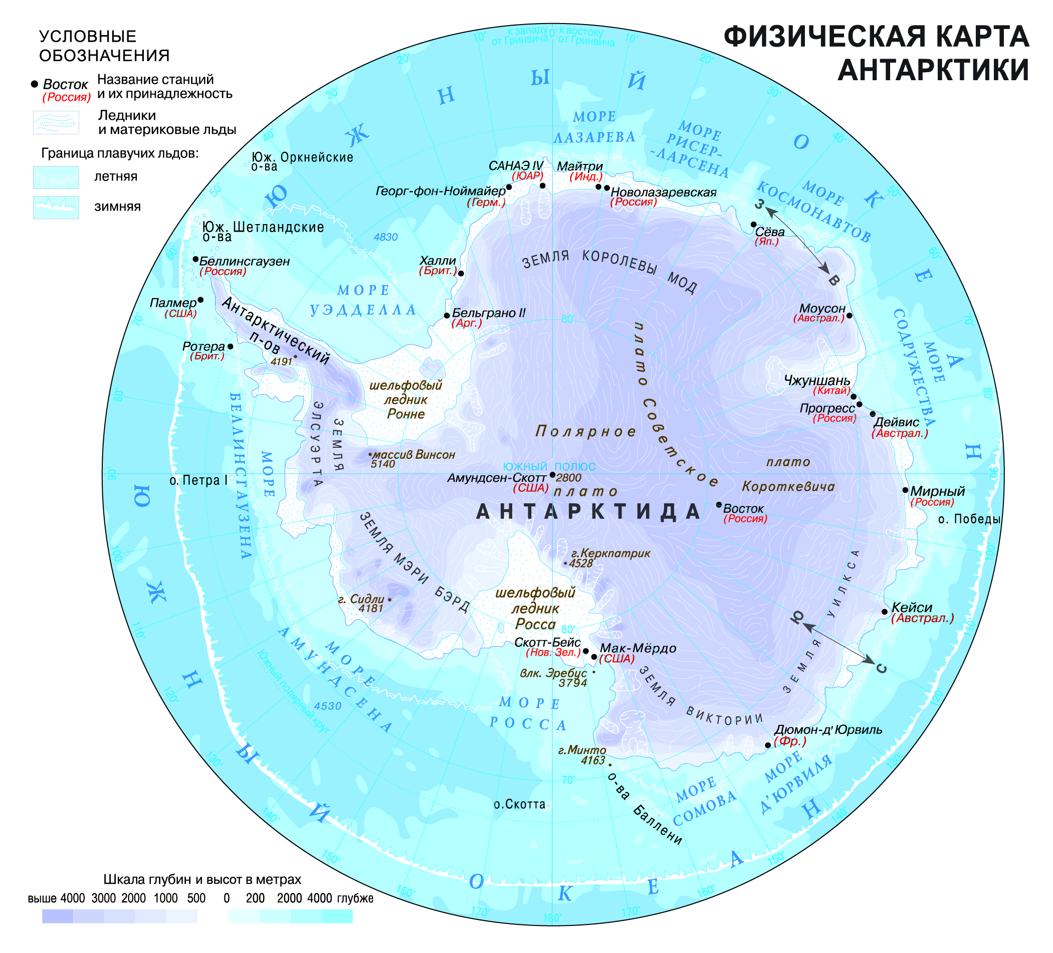 ФИЗИЧЕСКАЯ КАРТА АНТАРКТИДЫ