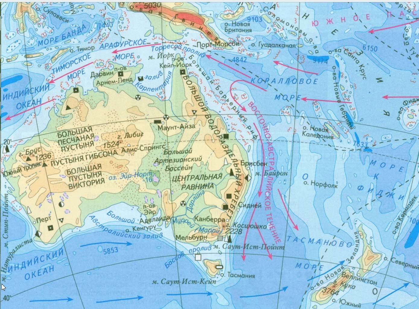 ФИЗИЧЕСКАЯ КАРТА АВСТРАЛИИ