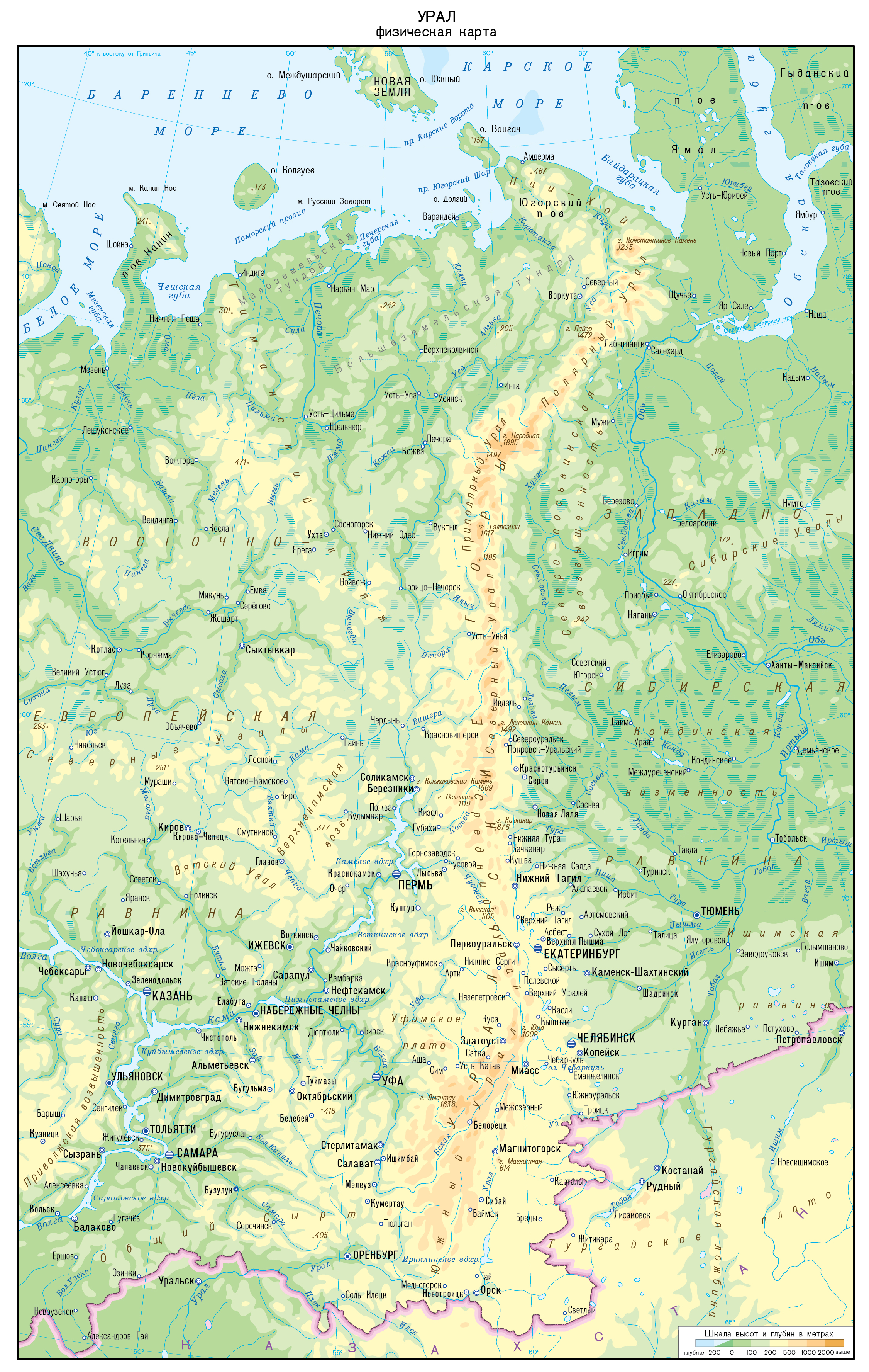 ФИЗИЧЕСКАЯ КАРТА УРАЛА