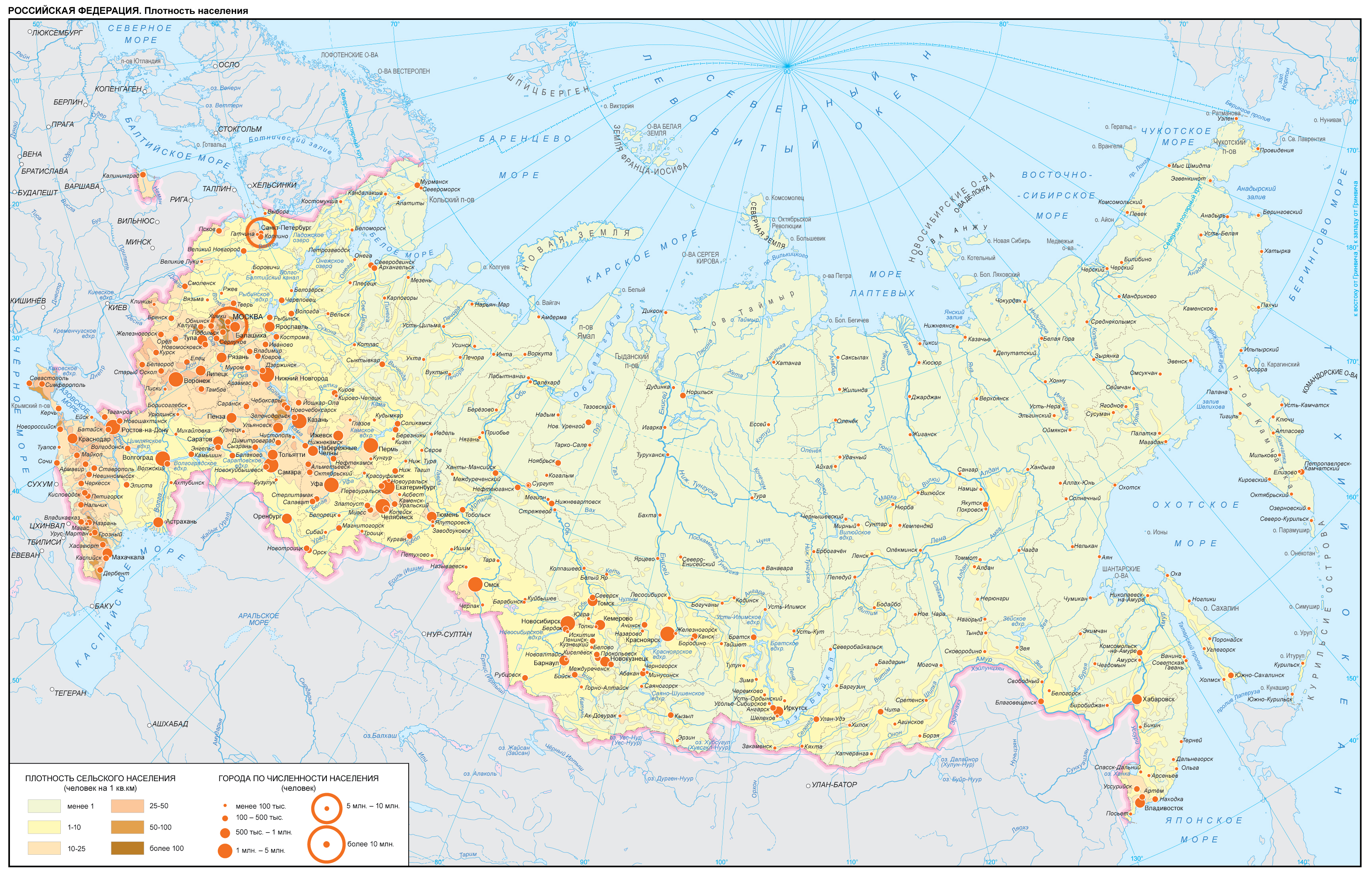 КАРТА ПЛОТНОСТИ НАСЕЛЕНИЯ РОССИИ