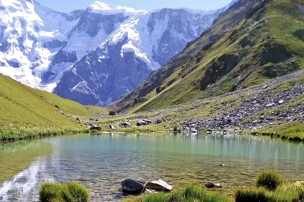 Это место, где горы выглядят максимально сурово. Безенгийская стена — главный хребет Кавказа, вытянутый на 12 километров. Здесь сразу несколько пятитысячников, ледники и ощущение, что природа показывает свою максимальную мощь. Стену называют самой высокой на Кавказе. Перепады высот достигают 2 километров, а вершины Шхара и Джанги-Тау уходят за отметку в 5000 метров. Северные склоны покрыты льдом, южные — крутые и опасные, с частыми камнепадами. По дороге встречается озеро Баран-Кош. Оно лежит в морене ледника и выглядит как зеркало среди камня: холодная прозрачная вода отражает вершины. Здесь часто ставят палатки и остаются на ночь. Вечером горы темнеют, а утром первыми ловят солнечный свет — и вся стена начинает светиться, словно изнутри. Маршрут проходит через альплагерь Безенги, дальше тропы, каменные участки и выход на ледник. Путь не самый простой, но специальной альпинистской подготовки не требует. Что важно знать: Расстояние: 17,4 км Время в пути: 9–10 часов Перепад высот: 2140–2750 м Стоимость: 150 рублей (заповедник) Сезон: июнь–октябрь