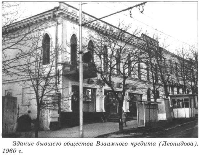 Двухэтажное здание, в фасаде которого угадываются то ли греческие, то ли готические мотивы, построил Александр Яковлевич Леонидов, унаследовав в 1853 году усадебное место своего отца, купца Якова Леонидова, который, в свое время, приобрел его у купца Игната Волобуева. В нижнем этаже Леонидов открыл книжно-бумажный магазин, а верхний сдал в аренду городу под Ставропольскую общественную, или публичную, библиотеку. Библиотека была богата различными изданиями, в том числе и современными периодическими. Здесь работал библиотекарем Герман Лопатин, в 1868 году высланный из Петербурга в Ставрополь под присмотр родных и надзор полиции. Публичная библиотека в доме Леонидова была им превращена, как сообщалось в доносах на имя губернатора, «в место сходок гимназистов и семинаристов старших классов и высланных в Ставрополь студентов». Позже сын Александра Яковлевича, Федор, устроил в нижнем этаже отцовского дома галантерейный магазин, а в верхнем - шикарный ресторан «Астория», где выступали все заезжие музыкальные знаменитости. В этом доме у Федора Александровича родились два сына - Вячеслав и Николай. Братья после смерти отца вновь перестроили интерьер дома. В нижнем этаже по-прежнему остался галантерейный магазин. Изделия лучших ювелиров России и мира хранились на втором этаже, в сейфе «Товарищества Сущевского завода в Москве». Это была целая комната из бронированной стали с такой же стальной дверью со сложнейшим замком и звуковой сигнализацией. Внутри находились стальные стеллажи с ячейками-сейфами. Бронированная комната сохранилась, однако дверцы малых сейфов были срезаны автогеном большевиками. Второй этаж дома братья Леонидовы сдали внаем Обществу взаимного кредита, способствовавшему развитию предпринимательства в городе и всей губернии. Экспроприированный в советские годы особняк Леонидовых менял хозяев, потом верхний этаж надолго занял крайком комсомола, а в нижнем этаже расположился мясоколбасный магазин, а недавно был гастроном «Звезда». Позднее второй этаж занимала туристская фирма «Спутник», а сейчас находится экспозиция Казаков-Некрасовцев.