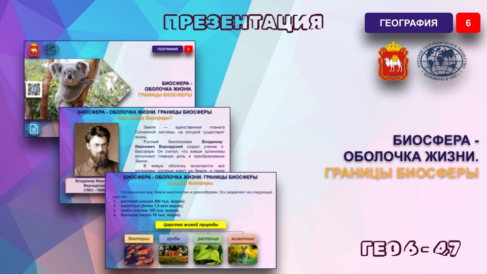 Что такое биосфера?Земля — единственная планета Солнечной системы, на которой существует жизнь. Русский биогеохимик Владимир Иванович Вернадский создал учение о биосфере. Он считал, что живые организмы исполняют главную роль в преобразовании Земли. В живую оболочку включаются все организмы, которые живут на Земле, а также вещество, созданное или изменённое ими. Биосфера - оболочка Земли, заселённая живыми организмами и преобразованная ими. Владимир Иванович Вернадский (1863 - 1945) Особенности живых организмов: 1. распространены повсеместно; 2. огромное разнообразие видов и форм жизни; 3. большая способность к размножению. Живые организмы влияют на поверхностные оболочки Земли: 1. регулируют газовый состав атмосферы; 2. изменяют состав гидросферы, регулируют состав соли в Мировом океане; 3. изменяют рельеф, участвуют в разрушении горных пород, при отмирании сами являются частью горных пород; 4. участвуют в создании почвы. Некоторые рекорды биосферы Карликовая ива — самое маленькое дерево (от нескольких см до 2 м). Гигантская секвойя — самое высокое дерево (более 80 м). Колибри — самая маленькая птица (около 60 мм). Страус — самая большая птица (более 2,5 м). Бурозубка — самое маленькое млекопитающее (4 см). Синий кит — самое крупное животное (более 30 м). Африканский слон — самое большое млекопитающее суши (масса — до 6 т, высота — до 4 м). Жираф — самое высокое животное суши (до 6 м). Гепард — самое быстрое наземное млекопитающее (120 км/ч). Белый медведь — самое северное животное (Арктика). Тюлень Уэдделла — самое южное животное (Антарктида). Як — самое высокогорное млекопитающее (до 6100 м, Тибет). Пеликанообразная камбала — самая глубоководная рыба (10917 м, Марианский жёлоб). Камнеломка — самое северное растение. Бамбук — самая высокая и быстрорастущая трава (91 см в день). Ротанговая пальма — самое длинное растение Земли (более 300 м) Границы биосферыГраницы биосферы и территория существования флоры и фауны на Земле совпадают. Поэтому в биосферу входят части других оболочек Земли: вся гидросфера, атмосфера (её нижняя часть) и литосфера (её верхняя часть). Озоновый слой является верхней границей биосферы, так как защищает живые организмы Земли от ультрафиолетового излучения Солнца. На суше нижняя граница живой оболочки находится в литосфере, но её проводят на разной глубине: от сотен метров до нескольких километров: здесь встречаются бактерии, которым не нужен воздух. Так как в донных илах были обнаружены живые организмы, нижнюю границу в Мировом океане проводят на некоторой глубине под океаническим дном. Самое крупное скопление живых организмов находится на границе суши и тропосферы, суши и океана. Это связано с оптимальными условиями для жизни, которые здесь сформировались: благоприятное соотношение температуры и влажности воздуха, наличие солнечного света и питательных веществ. Условия обитания живых организмов на Земле — самые разнообразные. Микроорганизмы могут переносить разные температуры: как ниже 0 °С, так и выше +100 °С. Семена некоторых растений прорастают, перенося охлаждение до −190 °С. Живые организмы можно встретить во льдах самых высоких гор, в безводных пустынях, в солёных озёрах и даже в подземных нефтяных пластах. Состав биосферыОрганический мир Земли многочислен и разнообразен. Его разделяют на следующие царства: 1. растения (св