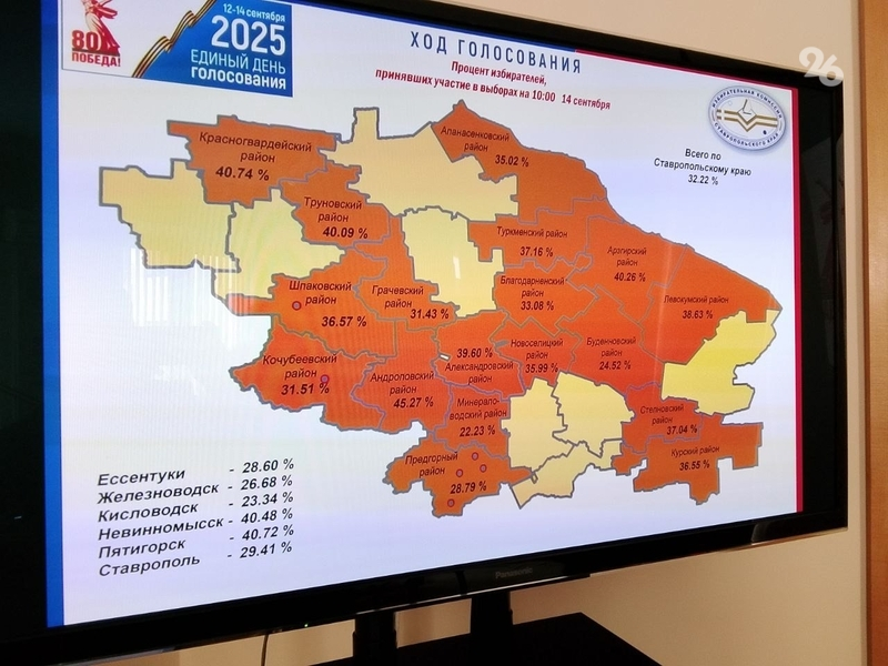 Так, наибольший процент явки — 45,2% — на утро воскресенья зафиксировали в Андроповском округе. В Красногвардейском и Арзгирском округах явка — 40,7% и 40,2% соответственно. Среди городов наибольшую активность зафиксировали в Пятигорске — 40,7%, а также в Невинномысске — 40,8%. В Ставрополе явка — 29,4%.Процент избирателей, принявших участие в выборах на 10:00 14 сентября на СтавропольеФото: Сергей Гаврилюк/ ИА «Победа26»По словам Сергея Тарасова, особое внимание на Ставрополье уделяют тем, кто голосует впервые. Для них в некоторых территориях приготовили сувениры. Также в выборах участвуют ветераны ВОВ и супружеские пары. «Наше старшее поколение, участники Великой Отечественной войны голосуют и даже приходят на избирательные участки. Это ли не пример для нас, для всех? И, конечно, преемственность есть, она сохраняется во многих семьях и во многих населённых пунктах. Например, вчера у нас голосовали молодые пары, они сразу после регистрации в ЗАГСе посещали избирательные участки», — поделился Сергей Тарасов. Ранее глава Ставропольского края рассказал о 101-летнем ветеране Великой Отечественной войны, который проголосовал на выборах в Андроповском округе. Поделиться в: Следующий