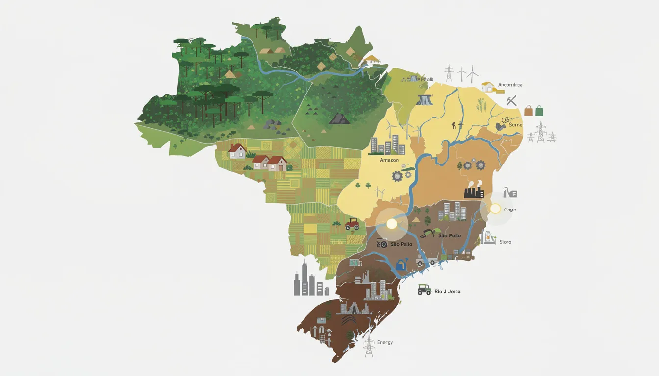 Бразилия — крупнейшее государство Латинской Америки, занимающее пятое место в мире по площади (8,5 млн км²) и седьмое по численности населения (около 213 млн человек). Особенности экономико-географического положения (ЭГП)Бразилия расположена в восточной и центральной частях Южной Америки, занимая 47% территории континента. Страна имеет выход к Атлантическому океану протяжённостью 7491 км и граничит со всеми странами Южной Америки, кроме Чили и Эквадора. Основная территория охватывает Амазонскую низменность на севере, Бразильское нагорье на юге и узкую прибрежную равнину вдоль Атлантики. Климат преимущественно жаркий: экваториальный во влажных лесах Амазонии (2000–3000 мм осадков в год, +21…+27 °C), субэкваториальный и тропический на остальной территории. Природно-ресурсный капиталБразилия обладает огромными запасами природных ресурсов мирового уровня. Водные ресурсы представлены реками Амазонка, Парана, Уругвай с высоким гидроэнергетическим потенциалом. Лесные ресурсы — уникальная Амазония. Минеральные богатства включают железные руды, марганец, никель, бокситы, уран, нефть и газ на шельфе. Страна лидирует по площади обрабатываемых земель и плодородных почв в дельтах рек и на Бразильском плоскогорье. НаселениеЧисленность населения превышает 200 млн человек, с большой расовой пестротой (европейцы, африканцы, индейцы, метисы), но языковой и религиозной однородностью (португальский язык, католицизм). Плотность заселённости неравномерна: до 3500 чел./км² в штате Гуанабара (Рио-де-Жанейро), низкая в Амазонии. Крупные агломерации — Сан-Паулу, Рио-де-Жанейро, Белу-Оризонти. Столица — Бразилиа (с 1960 г.). ХозяйствоБразилия — индустриальный гигант Латинской Америки с развитым сельским хозяйством (кофе, сахар, соя, мясо), добычей полезных ископаемых и промышленностью (автомобили, самолёты). Федеративная республика из 26 штатов и столичного округа. Разделена на регионы: Север, Северо-Восток, Юго-Восток, Юг, Центральный Запад. Современные проблемыСтрана сталкивается с контрастами в развитии регионов, острыми социальными проблемами, политической нестабильностью, вырубкой Амазонии, бедностью на Северо-Востоке и урбанизацией с фавелами в мегаполисах. | |