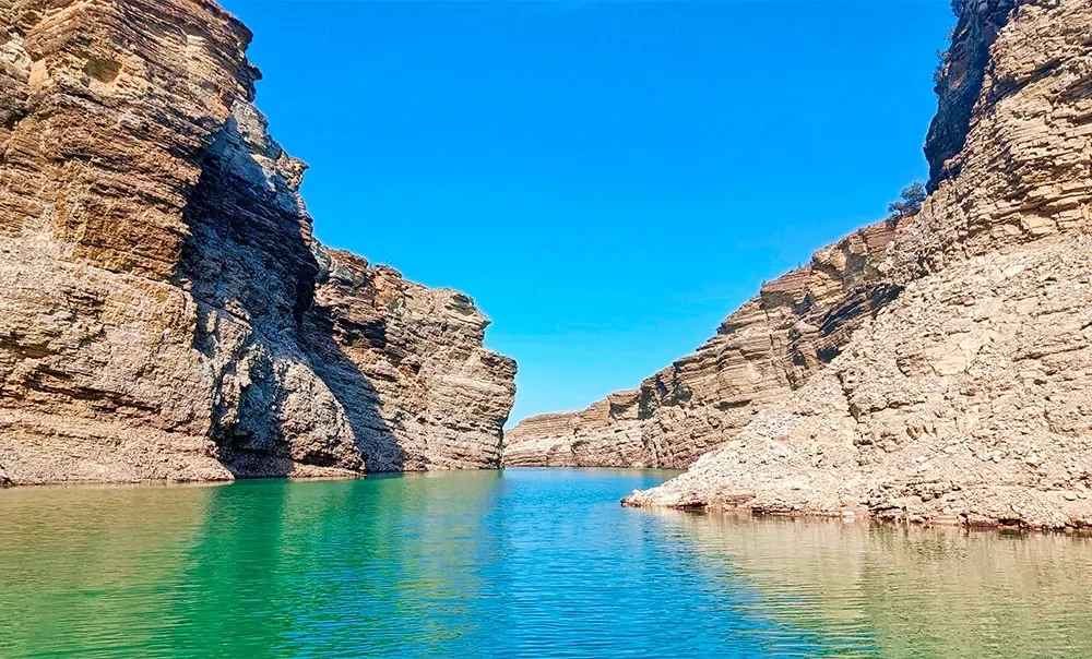 Крупнейшее водохранилище Северного Кавказа, спрятанное среди горных хребтов, поражает масштабом и пейзажами. Узкие заливы, крутые склоны и лазурная вода создают ощущение, будто это не Дагестан, а норвежские фьорды. Водоём появился в 1974 году при строительстве Чиркейской ГЭС на реке Сулак. Его длина достигает около 40 км, ширина — до 5 км, а глубина в отдельных местах уходит до 220 метров. Береговая линия изрезана и тянется почти на 86 км. Одни участки береговой линии покрыты зелёными склонами, другие — полностью скалистые. Вода имеет мягкий сапфировый оттенок и выглядит особенно эффектно с высоты. Купание официально запрещено, но туристы всё равно заходят в воду — она прохладная даже летом. Популярны прогулки на катерах: с воды открываются лучшие виды на Сулакский каньон.