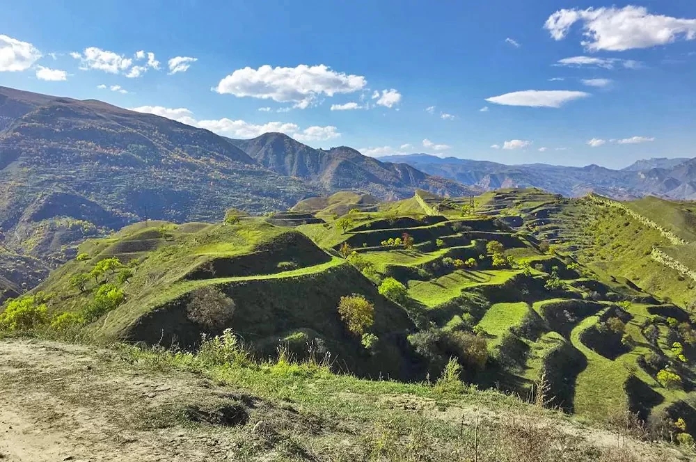С первого взгляда кажется, что это где-то в Азии — Непал или Китай. Но нет, это Дагестан. Склоны возле аула Чох разрезаны на десятки ступеней, словно гигантская лестница, уходящая в горы.