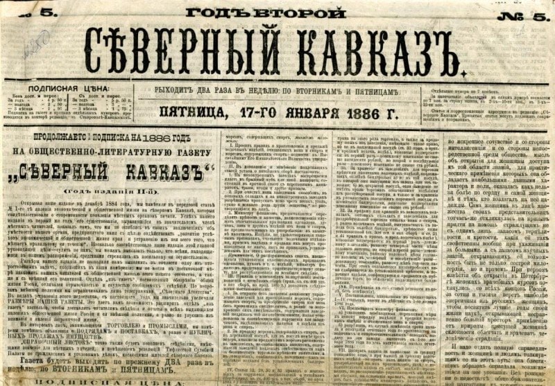 #день_в_истории 1 декабря 1884 года в Ставропольской губернии вышла в свет первая частная газета — Северный Кавказ | |