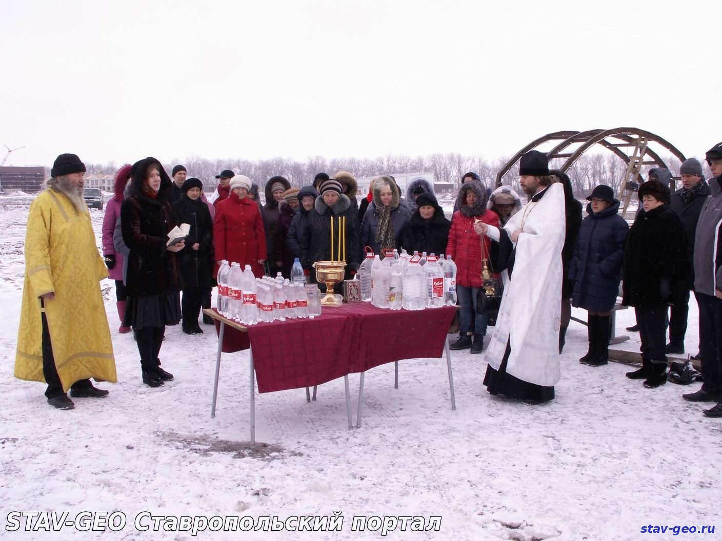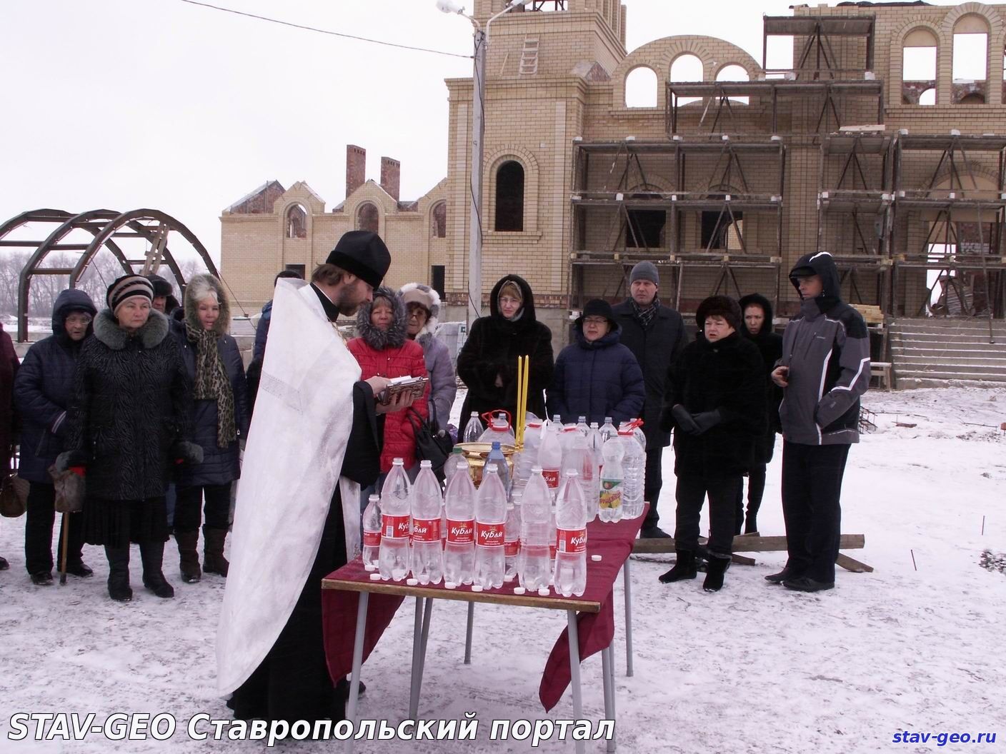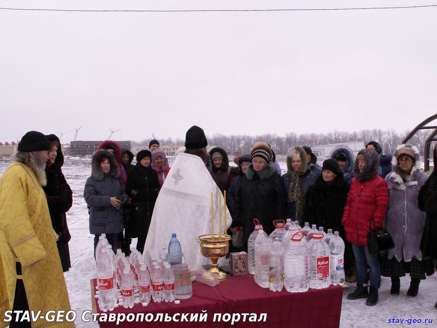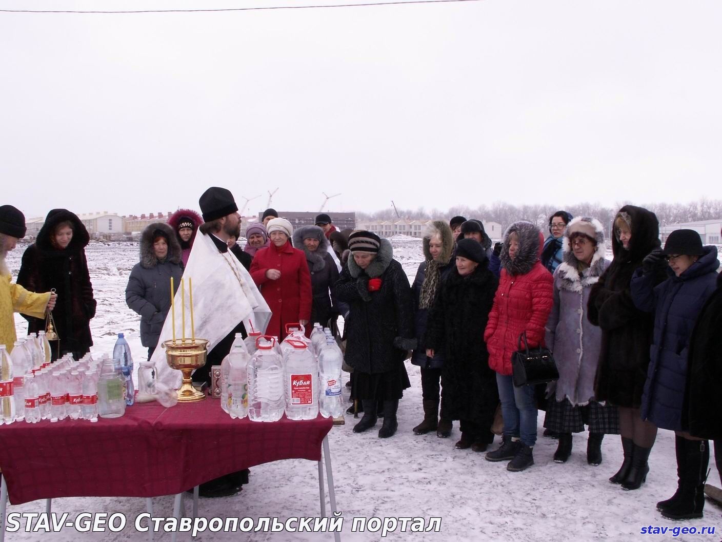 В жилом районе «Гармония» города Михайловска на территории храма Святого великомученика Артемия – покровителя семьи – состоялось Крещенское богослужение и Великое освящение воды. В Церкви существует два чина водоосвящения — Великий и малый. Великое водоосвящение совершается только на праздник Крещения Господня, Богоявление — 19 января, а также накануне в Навечерие праздника. В обоих случаях вода освящается одним и тем же чином – Великим, так что и свойства ее одинаковые. После этого, освященная вода получает название Великая Агиасма и становится святыней. В дальнейшем ее употребляют по утрам натощак, а также в особых ситуациях, например, во время болезни. В Церкви известно, что если к крещенской воде относиться благоговейно, то она может сохранять свои свойства и не терять вкуса в течение целого года, до следующего праздника Богоявления.