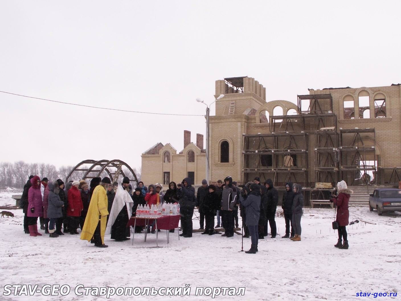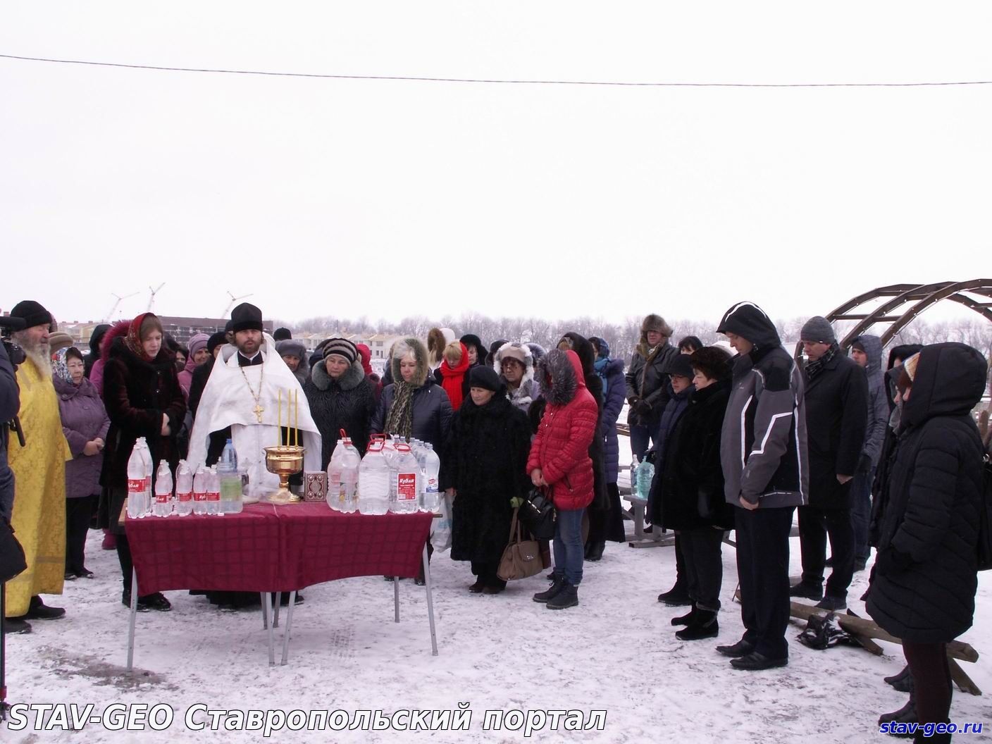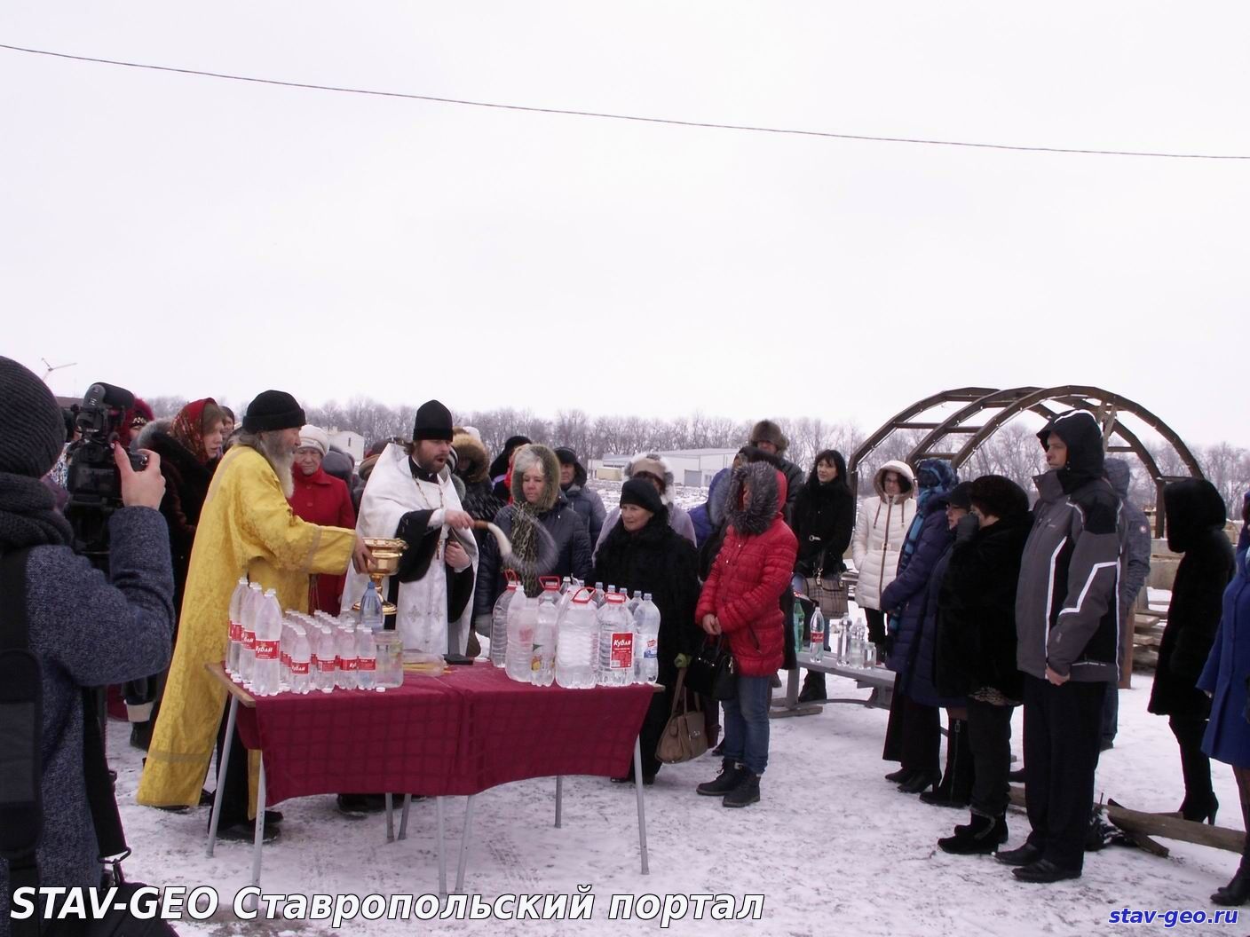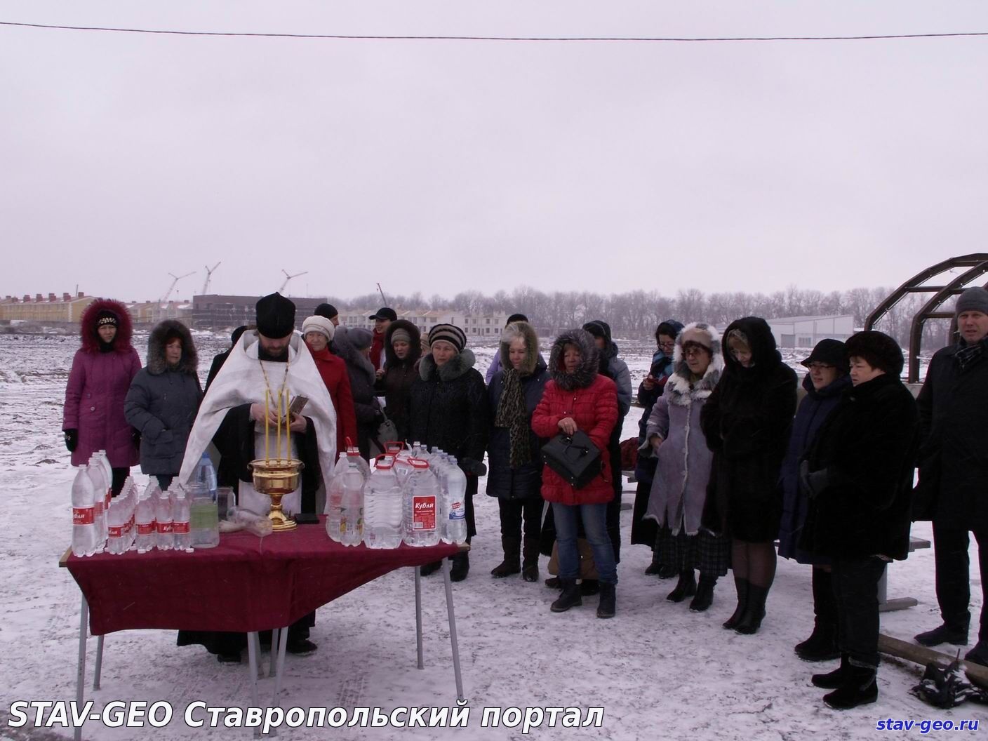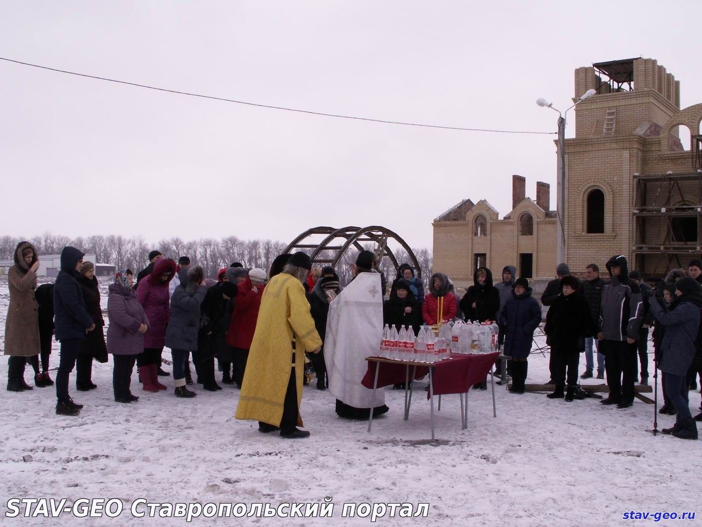 В жилом районе «Гармония» города Михайловска на территории храма Святого великомученика Артемия – покровителя семьи – состоялось Крещенское богослужение и Великое освящение воды. В Церкви существует два чина водоосвящения — Великий и малый. Великое водоосвящение совершается только на праздник Крещения Господня, Богоявление — 19 января, а также накануне в Навечерие праздника. В обоих случаях вода освящается одним и тем же чином – Великим, так что и свойства ее одинаковые. После этого, освященная вода получает название Великая Агиасма и становится святыней. В дальнейшем ее употребляют по утрам натощак, а также в особых ситуациях, например, во время болезни. В Церкви известно, что если к крещенской воде относиться благоговейно, то она может сохранять свои свойства и не терять вкуса в течение целого года, до следующего праздника Богоявления.