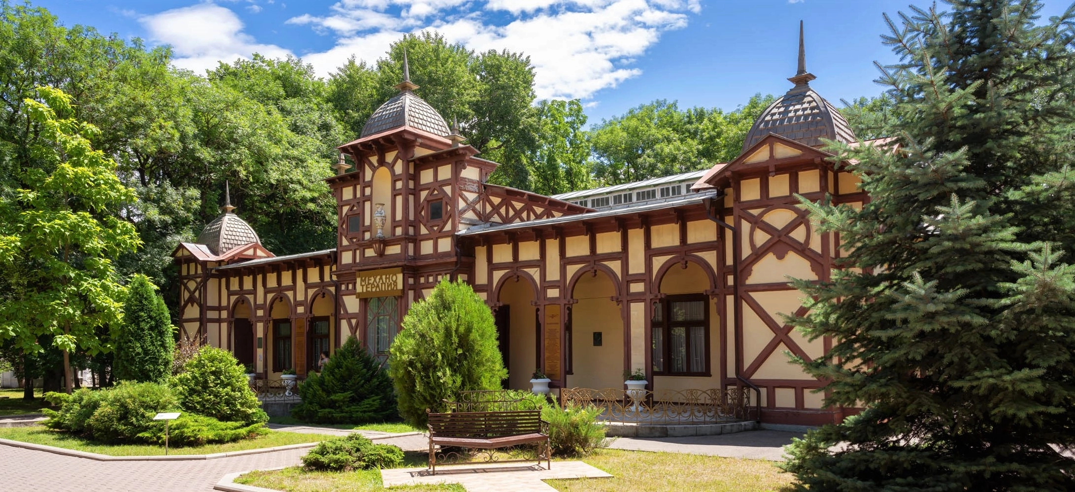 Курорт Ессентуки является небольшим городком, но даже в нем есть чем насладиться, что посмотреть и куда отправиться на экскурсию или прогулку. Главная достопримечательность Ессентуков – его природа и целебные факторы. С двух сторон город окружают лесные массивы, в Ессентуках есть два потрясающих парка Главный и Комсомольский. В парках проложены терренкуры, установлены беседки для отдыха скамьи, фонтаны. Парк в ЕссентукахПаркам в Ессентуках более ста лет, на протяжении всех этих лет они ухожены, благоустроенны и всегда в яркой зелени деревьев, цветов и кустарников. Горожане поддерживают в должном виде многочисленные цветники, гроты и каскадные лесенки. В центре города на площади около 60 га раскинулся Курортный парк, состоящий из Верхнего и Нижнего парка. В Верхнем парке находятся Верхние ванны, физиотерапевтическая лечебница, бювет с минеральной водой из источника № 1, музыкальная эстрада летнего типа, библиотека; в Нижнем парке – Нижние ванны, летние бюветы источников местной воды, питьевая галерея с источниками №17, №20, буровая №1. Плачущий гротВ Нижней части Курортного парка находятся Плачущие гроты. Вход в один из таких гротов, где можно видеть процесс образования источников, расположен за беседкой Ореандой. Найти вход в грот не сложно: в нижней части парка необходимо двигаться по главной аллее мимо санатория им. Свердлова; справа от ступеней есть металлическая решетка с изображением капли, а сразу за ней – живые капли воды, падающие со свода грота на землю. Эти капельки падают со звоном – создается впечатление, что грот плачет. В Ессентуках располагается бальнеотерапевтическое отделение, учреждения которого ежедневно отпускают свыше 10 тысяч процедур. В это отделение входит грязелечебница, 3 бальнеолечебницы, отделение механотерапии, ингаляторий и источники минеральной воды. К тому же в каждой здравнице работает ванное отделение с хвойными, жемчужными, хвойно-жемчужными ваннами. Как правило, бюветы с питьевой минеральной водой располагаются в лечебных парках. Верхние минеральные ванныИмеют немалую известность Верхние минеральные ванны. Их здание выполнено в классических формах русского ампира, а грязелечебница сделана в соответствии с образцами римской классики. Славится необычной архитектурой также и Цандеровский институт врачебной гимнастики, он предназначен для лечения больных с заболеваниями опорно-двигательного аппарата, они занимаются здесь на специальных устройствах и тренажерах. Бывшая дача И. Г. ЗиминаИнтересна в стилевом плане бывшая дача И.Г. Зимина. Трехэтажное здание построено в стиле модерн. Со стороны южного фасада по бокам к зданию примыкают две башни высотою в 2 и 4 этажа. Одна из них на вершине имеет парапет, приветливый вид зданию придает светлый кирпич, фигурные детали. | |