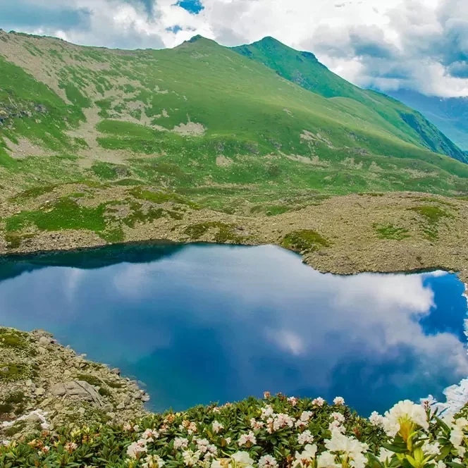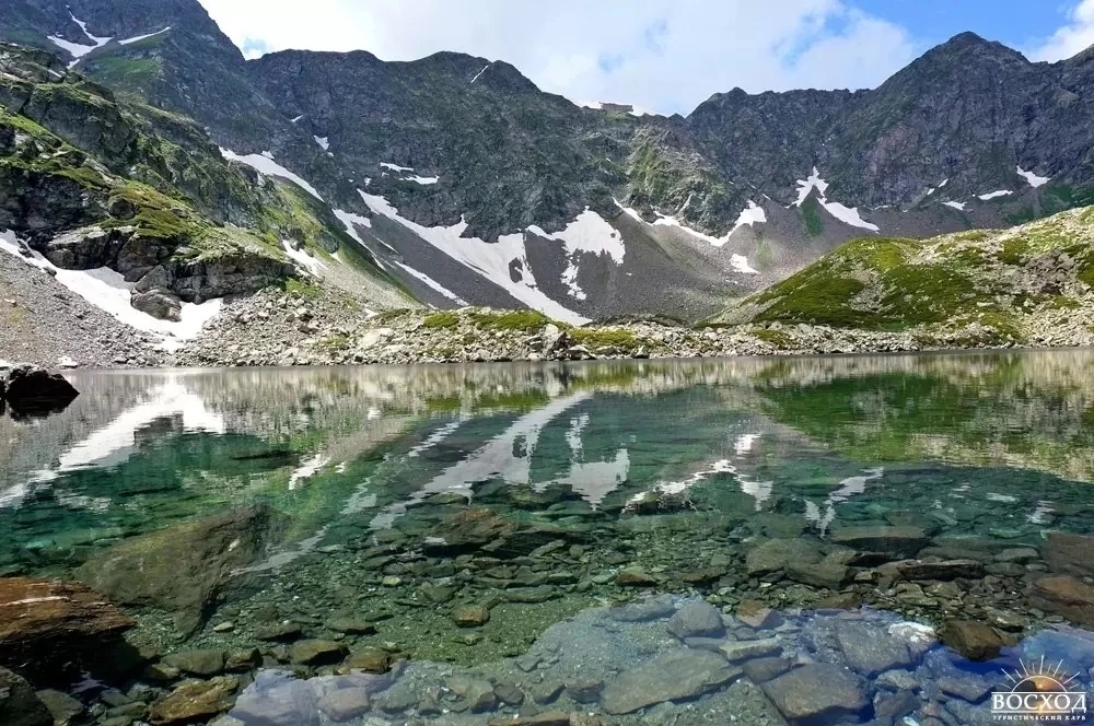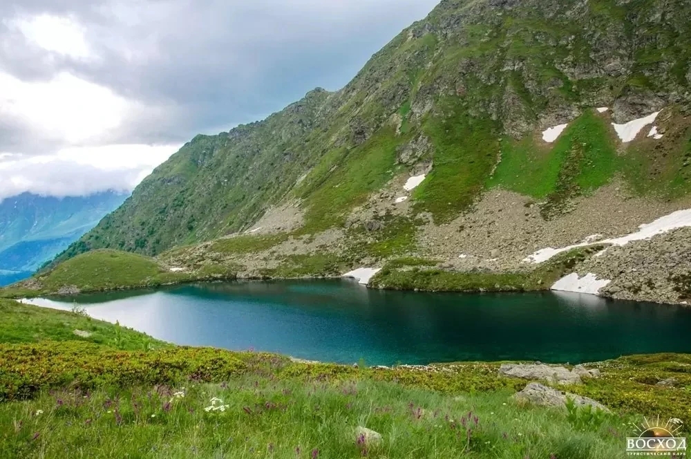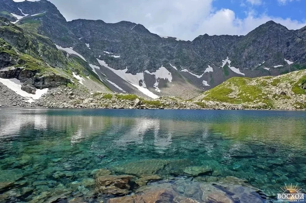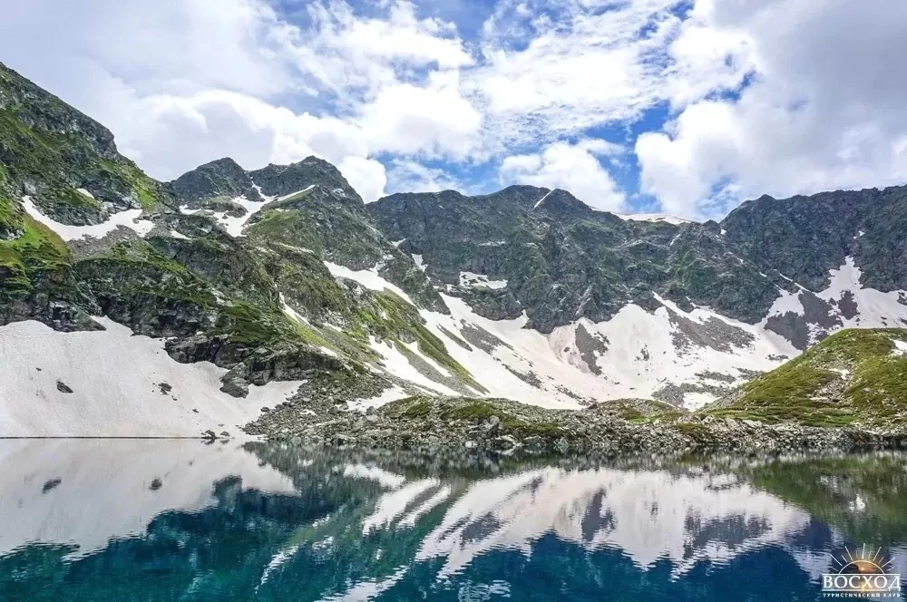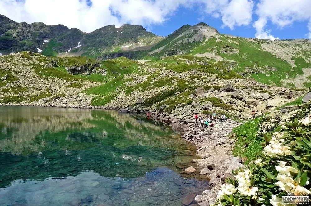 Самые известные три: Аркасарское — крупнейшее, Сказка Кавказа — вытянутое и спокойное, и озеро Рыбка — первое, которое встречается на маршруте. В ясную погоду отсюда открываются виды на вершины Карачайка, Разломистая и хребет Аркасар. Вода настолько прозрачная, что видно дно до мелких камней.