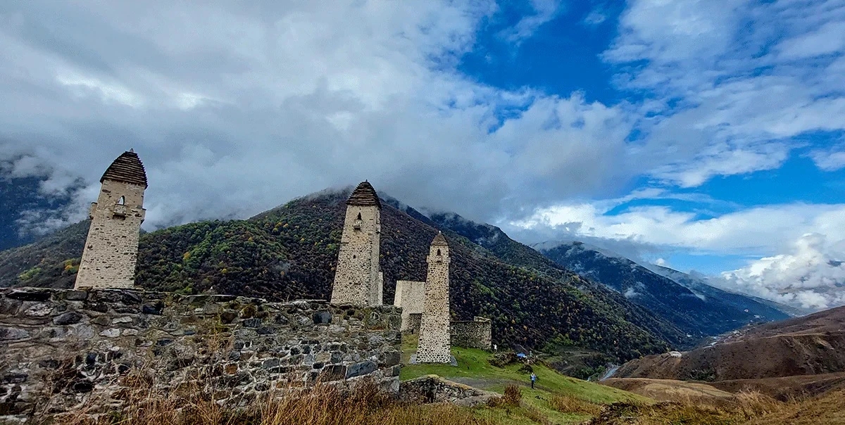 Он прячется в Джейрахском ущелье, среди склонов и туманов, словно часть самой горы. Башенный комплекс Эрзи — это не одна постройка, а целый каменный город, раскинувшийся на высоте и сохранивший дух средневекового Кавказа. Название переводится как «орёл» — и это чувствуется: башни стоят гордо, цепляясь за склоны, как гнездо высоко в горах. Здесь их почти полсотни — жилые, боевые, полубоевые. Некоторые достигают 30 метров, и даже спустя века выглядят так, будто готовы выдержать всё. Башни возводили на прочных скальных основаниях, а кладка до сих пор держит форму, несмотря на землетрясения. Говорят, в раствор добавляли яичные желтки, а место под строительство выбирали необычно — лили молоко: если не впитывается, значит, можно строить. С этим местом связано множество легенд. О первой башне, построенной воином Итаром. О бронзовом орле, найденном здесь и ставшем символом Ингушетии. И о туманах, в которых весь комплекс будто исчезает, превращаясь в мираж. Что важно знать: Высота башен: до 30 м Количество построек: ~50 Доехать можно на любом авто, далее небольшой пеший подъем Сезон: круглый год Стоимость: бесплатно