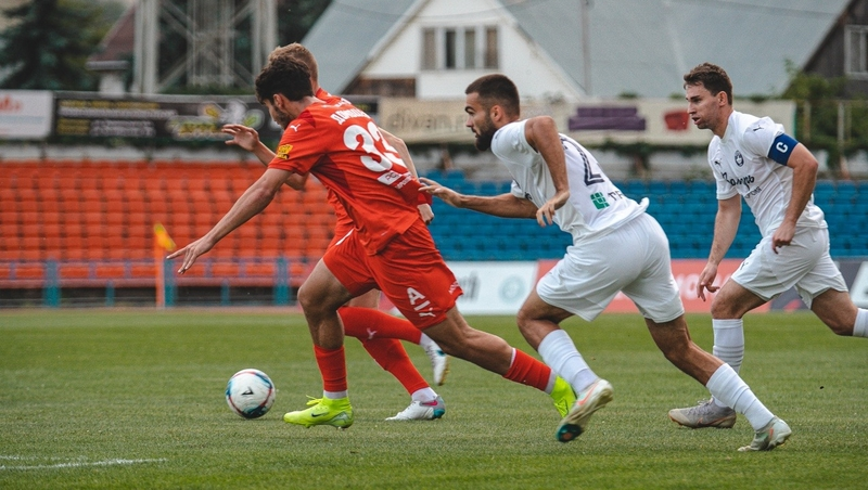 В первом тайме активнее выглядели волжане. Первый опасный момент они создали на 13-й минуте — на дальний удар решился капитан местной дружины Олег Дмитриев, однако мяч разминулся со штангой в нескольких сантиметрах. Следом из-за пределов штрафной площадки плотно пробил полузащитник «волгарей» Михаил Стрельник — мяч пролетел над перекладиной. А вот третий «звоночек» оказался результативным: на 37-й минуте Олег Дмитриев отправил мяч в дальний угол, и ставропольский вратарь Олег Суворова не смог отбить — 1:0. После этого «курортники» стали чаще хозяйничать на чужой половине поля, но до сигнала на перерыв был лишь один безрезультатный удар Анзора Хутова. После отдыха полузащитник гостей Раджаб Гусенгаджиев атаковал ворота хозяев, но голкипер «Волгаря» Владислав Ямпольский с трудом в прыжке перевёл мяч на угловой. На 60-й минуте подключившийся к розыгрышу стандарта защитник астраханской команды Егор Прошкин отправил мяч в ворота пятигорчан — 2:0.Несмотря на активную игру, пятигорские футболисты проиграли астраханскимФото: ФК «Машук-КМВ»После этого события окончательно переместились на астраханскую половину поля. Тренерский штаб «Машука-КМВ» произвёл ряд замен, рассчитанных на усиление атакующего потенциала, и опасные моменты в волжских владениях начали возникать регулярно. Шансы поразить цель были у Дениса Богомолова, Ивана Селеменева, Анзора Хутова, Магомеда Абидокова и Рустама Мачилова, однако сократить отставание ни одному из представителей кавминводского коллектива так и не удалось. Финальный сигнал зафиксировал триумф поднявшегося на вершину турнирного реестра «Волгаря» со счётом 2:0. В следующем матче национального первенства пятигорский клуб, который теперь занимает вторую позицию, на своём поле померится силами с кировским «Динамо». Этот поединок состоится 25 октября. Поделиться в: Следующий