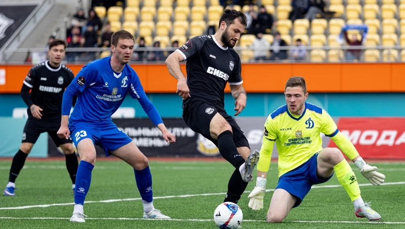 Это был матч четвёртого тура первенства России в «серебряной» группе дивизиона «А» второй лиги. Соперники начали поединок со взаимных атак. Любимцы местной публики могли открыть счёт на второй минуте – Даниил Камлашев в упор расстреливал Вадима Гуськова, но вратарь «Динамо» смог спасти команду от неприятностей. Ещё через пару минут всё тот же Камлашев издали бил в нижний угол – Гуськов мяч забрал. Гости ответили выстрелом Данилы Шилова. Голкипер «Тюмени» Никита Янович с задачей справился, зафиксировав круглый снаряд в руках. На 18-й минуте на ударной позиции оказался подключившийся к розыгрышу углового центральный защитник ставропольского коллектива Геннадий Шульга, головой пробил рядом со штангой. Следом дважды реакцию Яновича дальними выстрелами проверял Иван Кудряшов. Вратарь сибиряков сыграл безупречно. Почти тут же угроза возникла в противоположной штрафной площадке. Андрей Марьянов пробил с двух метров мимо створа.Соперники начали со взаимных атакФото: ФК «Тюмень»И всё же принимающая сторона ещё до перерыва сумела «распечатать» динамовские владения. После розыгрыша штрафного удара Данил Хромов при попытке выбить мяч срезал его в собственные ворота – 0:1. А в начале второй половины встречи сибиряки удвоили преимущество: Руслан Болов воспользовался передачей Виталия Шитова с правого фланга и беспрепятственно расстрелял ставропольские ворота. Однако визитёры не сдавались. На 68-й минуте Ринат Гараев после точной передачи Ивана Кудряшова сократил отставание до 1:2. Это, кстати, был первый гол дружины под управлением тренера Ашамаза Шакова в 2026 году. Под занавес противостояния динамовцы устроили штурм у чужих ворот, но хозяева выстояли. Дважды в течение минуты их выручил вратарь Никита Янович. Сначала он вытащил мяч из «девятки» после удара Михаила Гайнова, а затем справился с выстрелом Владислава Рымаря. И всё же последнее слово осталось за хозяевами. На 88-й минуте Даниил Камлашев попал в верхний угол ворот – 3:1 в пользу «Тюмени».Ставропольцы забили гол лишь на 68-й минутеФото: ФК «Тюмень»Следующий поединок национального первенства «Динамо» проведёт 28-го марта: в Ессентуках сине-бело-золотая команда примет краснодарскую «Кубань».