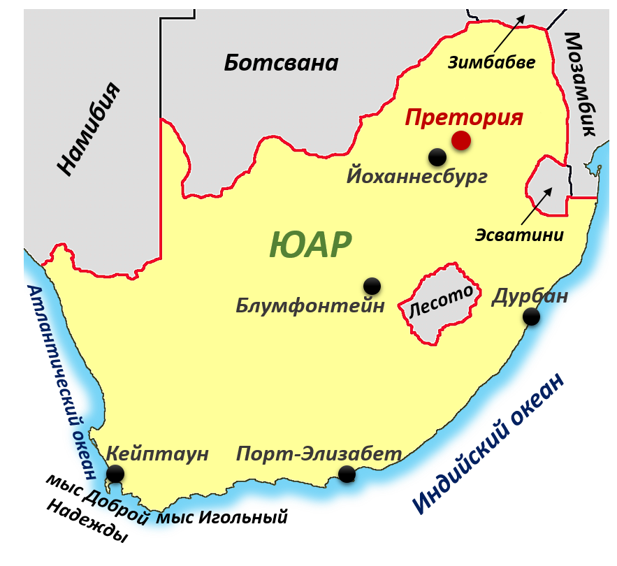 Южно-Африканская Республика (ЮАР) — государство в южной части Африки, которое отличается особенностями природно-ресурсного капитала, населения и хозяйства.