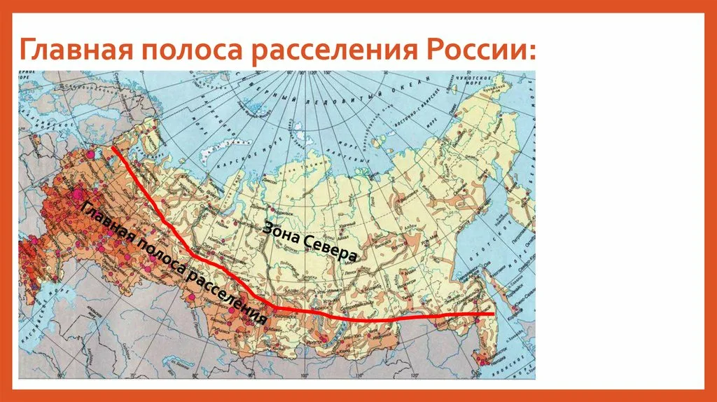 Основная (главная) полоса расселения — это территория, на которой сосредоточена большая часть жителей страны. Здесь расположена наиболее плотная сеть поселений и большинство крупнейших городов (с населением свыше 500 тыс. человек).