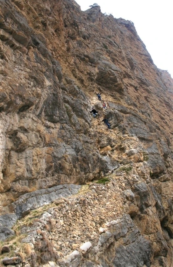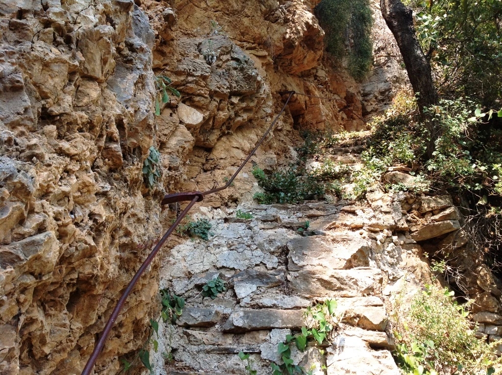 Лестницу называют Греческой или Битикле. Её построили в средние века как часть оборонительной системы. Каменные пролёты, наклонные участки и узкие карнизы вели к башням и пещере, где хранились ценности.