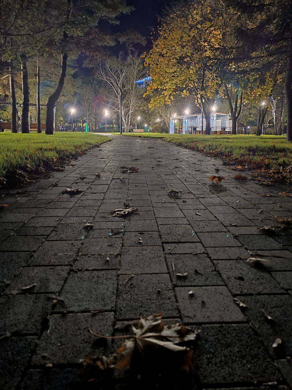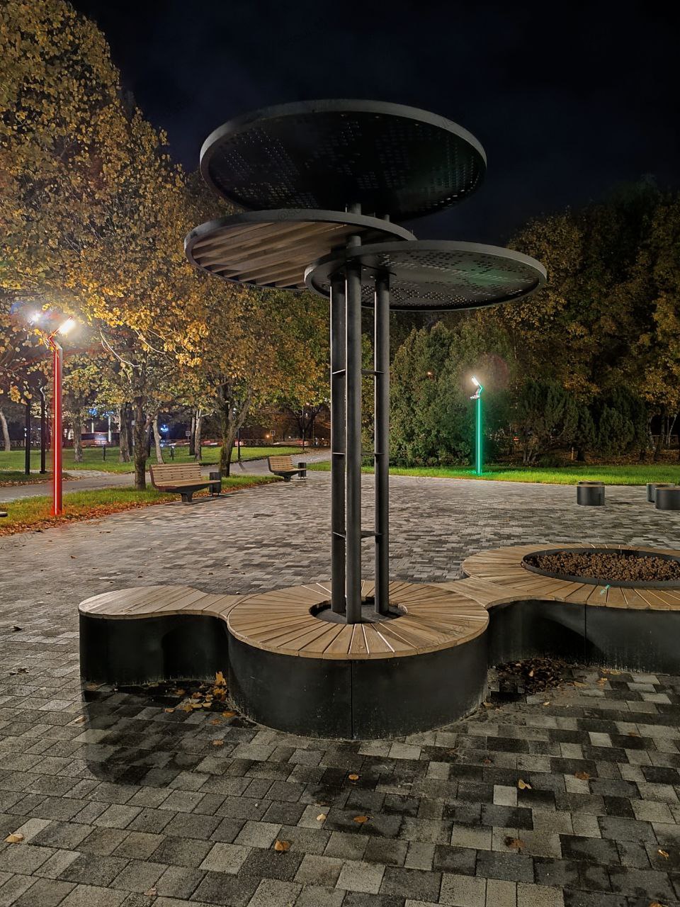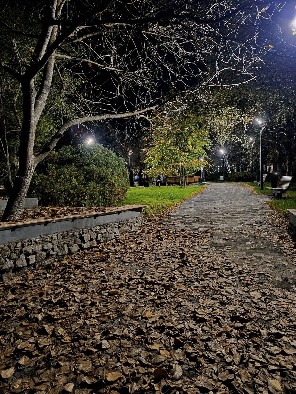 Яркий осенний вечер в обновленном сквере у завода «Нептун», проспект Кулакова
