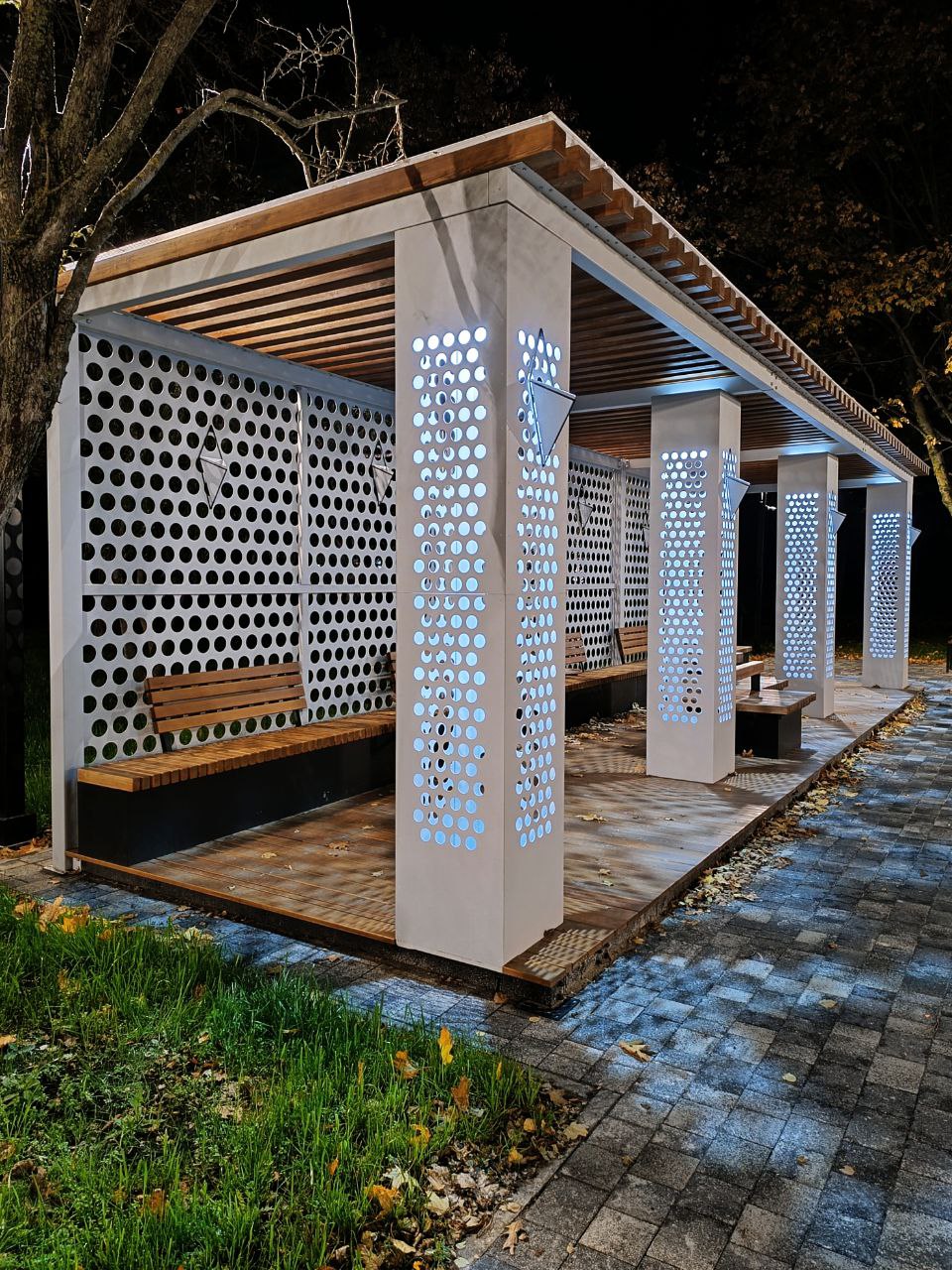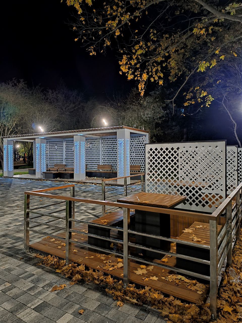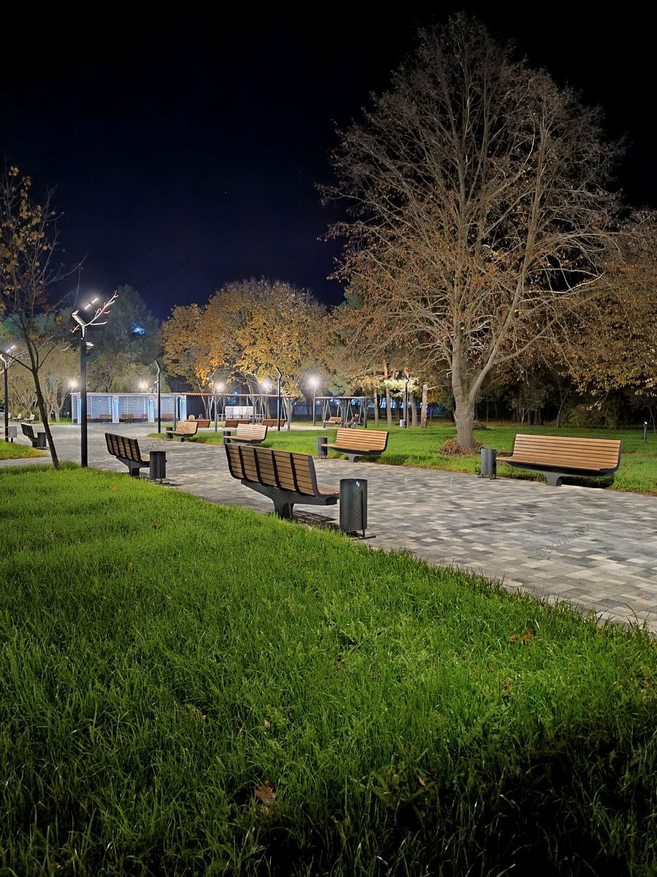 Яркий осенний вечер в обновленном сквере у завода «Нептун», проспект Кулакова