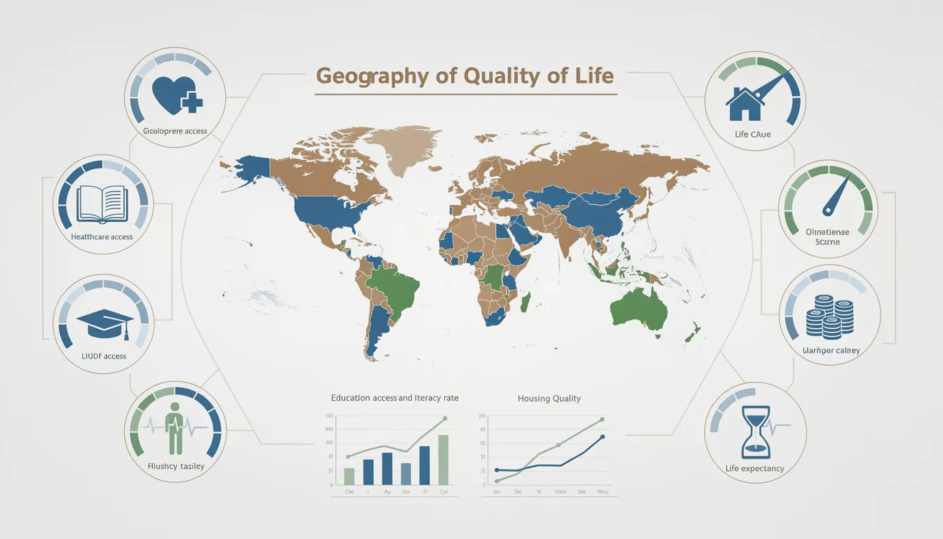 Качество жизни населения представляет собой совокупность экономических, социальных, культурных и экологических условий, определяющих уровень удовлетворения материальных, духовных и социальных потребностей людей. Это междисциплинарное понятие включает эффективность всех сторон жизнедеятельности человека, его интеллектуальное, культурное и физическое развитие, а также степень обеспечения безопасности жизни. Основные показатели качества жизниДля оценки качества жизни используются различные статистические индикаторы, разделяемые на несколько блоков. К ним относятся:
