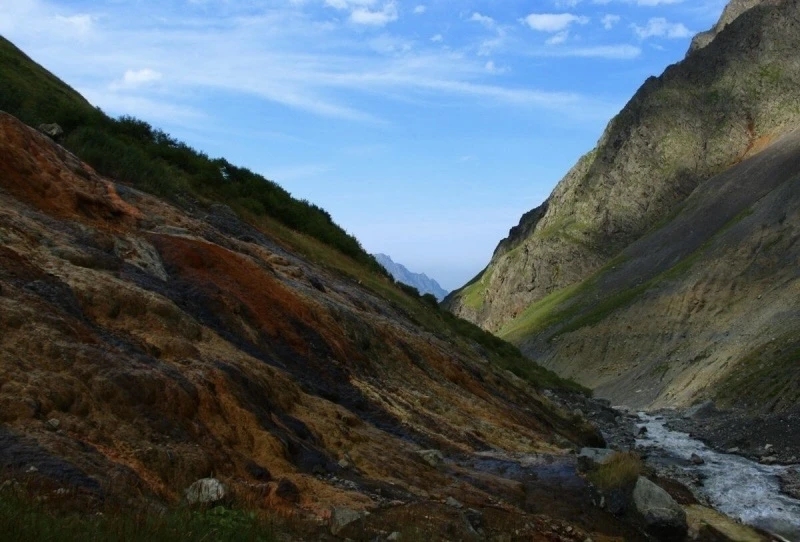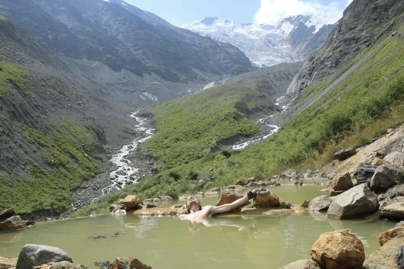 В самом конце Геналдонского ущелья, на высоте около 2300 метров, спрятаны Кармадонские ванны — природные радоновые источники, где горячая вода выходит прямо из недр горы. Это одно из самых необычных мест Северной Осетии, где можно буквально «вариться» в дикой природе.