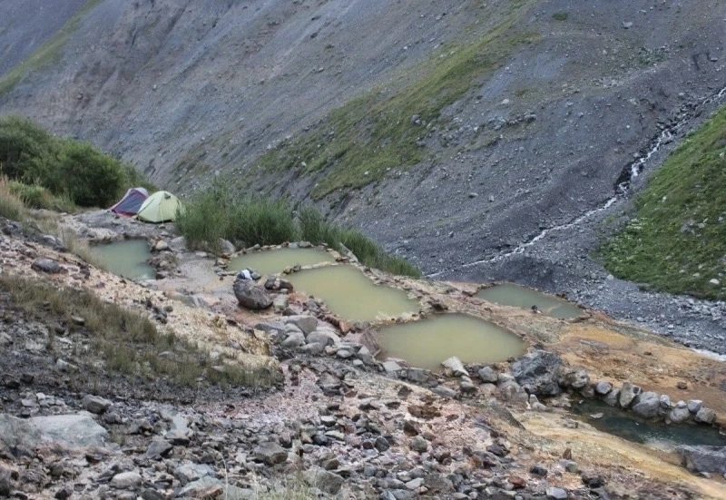 Маршрут начинается от пограничной заставы. До верхних ванн идти около 3–4 часов. По пути встречаются ручьи, места для стоянок и участки, где нужно быть особенно аккуратным.