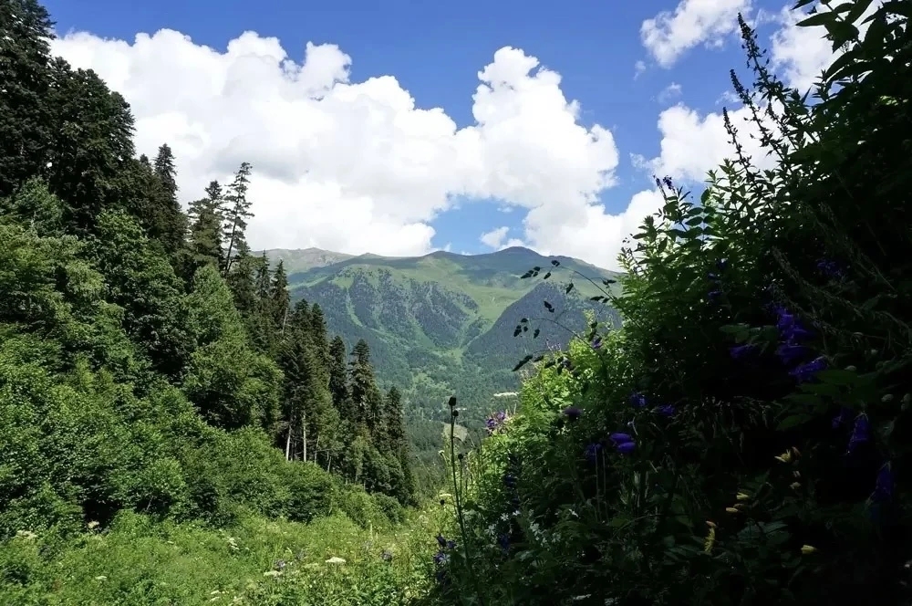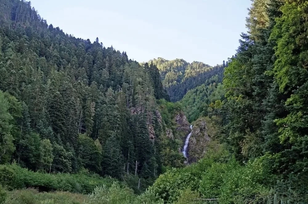 Один из самых доступных и красивых водопадов Архыза спрятан в ущелье Кизгыч. Это не самый мощный поток Кавказа, но именно в этом его шарм — тонкая водяная вуаль, стекающая по янтарным скалам среди хвойного леса. Весной водопад становится шумным и полноводным, а летом — спокойным и почти медитативным. Вода здесь чистейшая, с легким привкусом минералов, и многие туристы пьют прямо из ручья. Маршрут к водопаду один из самых простых в регионе. Всего около 3–4 км по тропе через лес и альпийские луга. По пути мост через Большой Зеленчук, хвойные чащи, поляны и места для отдыха. Рядом есть смотровая площадка с видом на хребет Абишира-Ахуба и сам Архыз. Что важно знать: Стоимость: 200 рублей (вход в заповедник) Маршрут: 3,4 км, 2–2,5 часа Сложность: подходит для всех Время посещения: 8:00–18:00