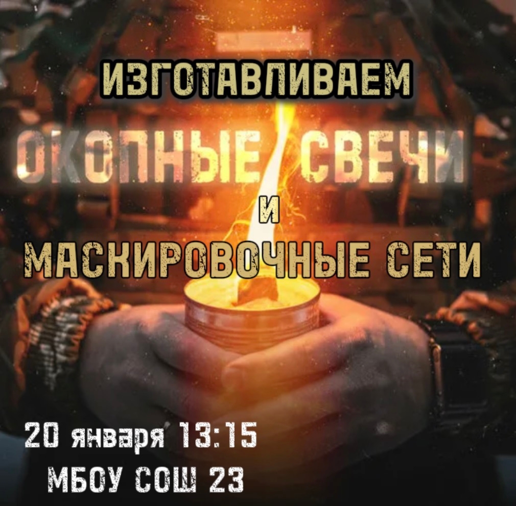 МБОУ СОШ №23 совместное плетение маскировочных сетей и изготовление окопных свечей для наших защитников. | |