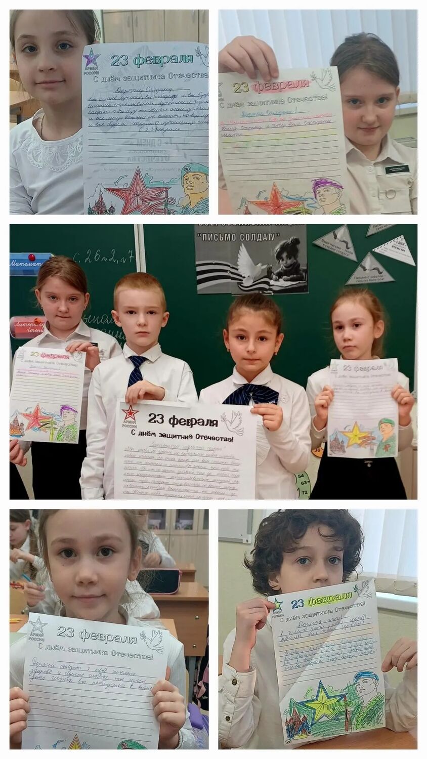 С самого начала специальной военной операции российские школьники поддерживают наших солдат и офицеров. Эта традиция берет свое начало еще с Великой Отечественной войны, когда письмо было радостной весточкой для солдата, придавало ему сил. Поддержка для участников специальной операции, находящихся вдали от дома, просто необходима. Письма станут для солдат доброй весточкой и благодарностью за мирное небо, которое они защищают. Учащиеся из 2 Ж класса присоединились к Всероссийской акции «Письмо солдату». Ребята в своих письмах выразили слова благодарности всем тем, кто сейчас исполняет свой воинский долг, за чистое, мирное небо, высказали пожелания успешного выполнения боевых задач, и возвращения солдат домой живыми и здоровыми. Свои письма ребята украсили рисунками, георгиевскими ленточками и оформили их в виде писем-треугольников.