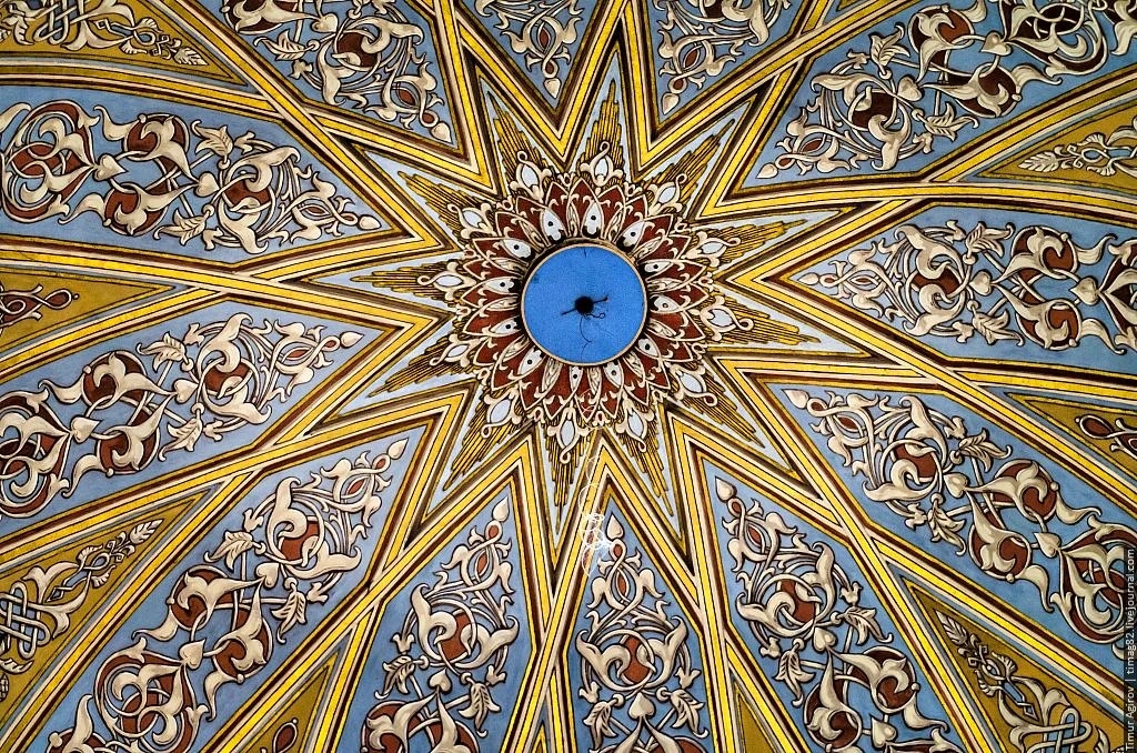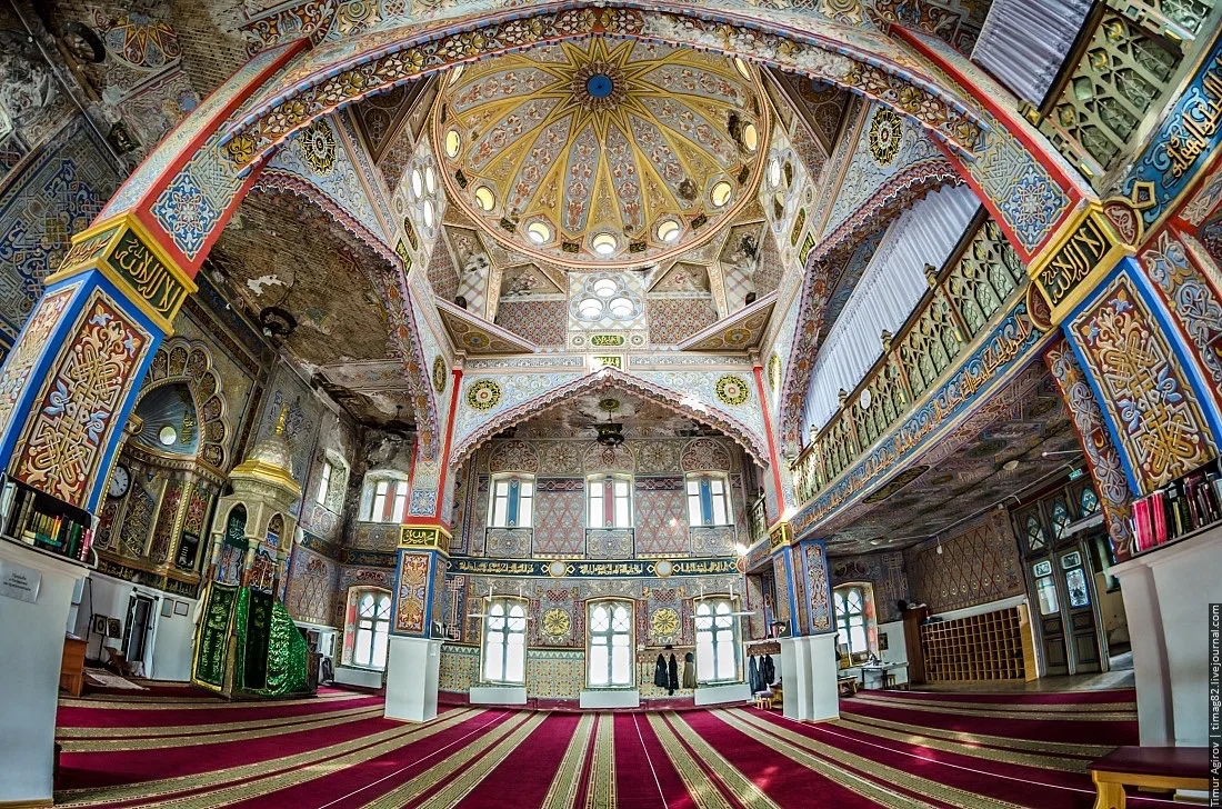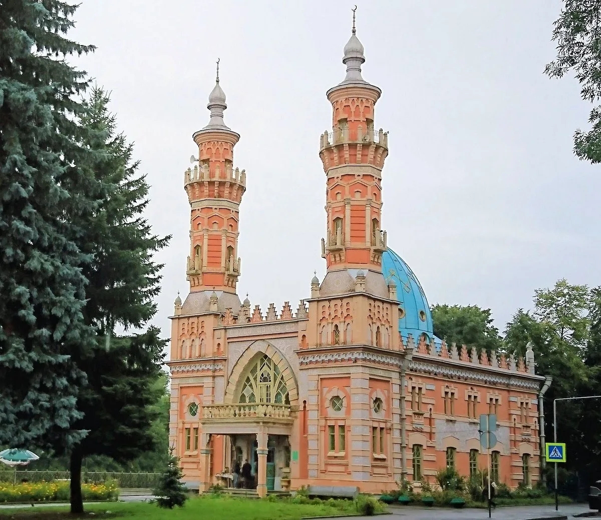 Здание имеет изящные минареты, стрельчатые арки и яркие орнаменты. Внутри высокий молельный зал, витражные окна и богатый декор. Мечеть остается действующей и одновременно считается одним из самых красивых зданий города.