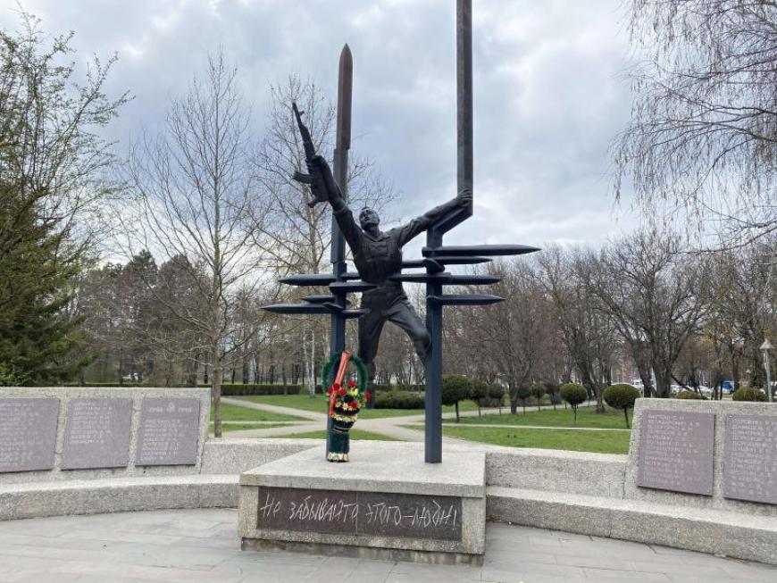 стена с гранитными плитами, на которых выбиты имена около 400 солдат и офицеров, погибших в боях на Северном Кавказе.