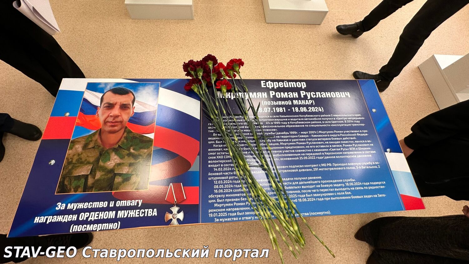 На торжественной церемонии в школе №25 имени К. Д. Ушинского города Михайловска прозвучали слова поддержки от губернатора Ставрополья Владимира Владимирова, адресованные семьям участников специальной военной операции. Глава Шпаковского округа Игорь Серов подчеркнул, что память о героях будет жить вечно, и именно поэтому появляются новые мемориальные объекты, такие как музей СВО «Подвигу жить». Право перерезать ленту предоставлено вдовам участников СВО Анне Мкртумян и Анне Нечаевой. В мероприятии приняли участие учащиеся, юнармейцы и преподаватели школы, а также директор учреждения Галина Митропольская и руководитель комитета образования администрации округа Наталия Юркова. Уникальность проекта в том, что музей СВО «Подвигу жить» создан благодаря победе в конкурсе инициатив родительских сообществ Российского общества «Знание» и Министерства просвещения РФ. Партой Героя стала вторая мемориальная парта в школе: на ученическом столе размещается фотография героя, биография и сведения о заслугах. Герой Роман Русланович Мкртумян родился в казьминском Ставропольского края. Во время службы он участвовал в контртеррористических операциях на Северном Кавказе, награждён медалью и удостоен статуса ветерана боевых действий. После частичной мобилизации он сам явился в военкомат, продолжил службу, а затем погиб 18 мая 2024 года на Запорожском направлении. Посмертно ему присвоено звание ордена Мужества. В памяти о нем и других защитниках Отечества в школе проводятся экскурсии и уроки военной истории. Места памяти, как и новая парта, призваны напоминать ученикам о долге и подвиге и вдохновлять на ответственное гражданское воспитание. Роман Мкртумян оставил после себя семейную историю мужества и самопожертвования. Его вклад в защиту Отечества и активная поддержка бойцов на передовой остаются примером для подрастающего поколения и жителей региона.