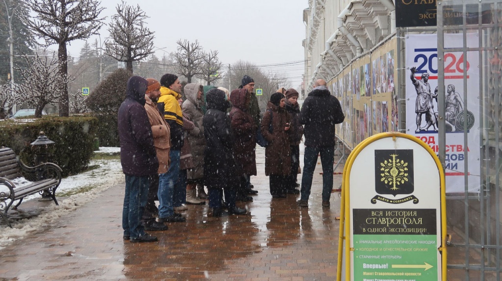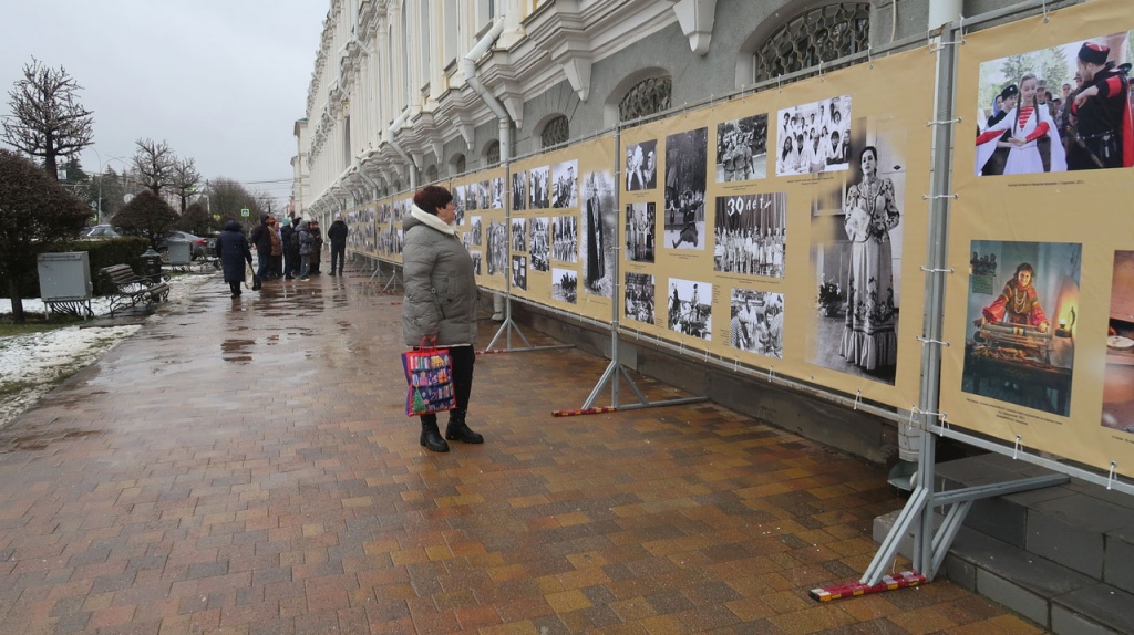 6 марта 2026 года у фасада Ставропольского государственного музея-заповедника состоялось открытие баннерной выставки «Этническая карта Ставрополья: единство и культурное разнообразие». Выставочный проект посвящен Году единства народов России. Он представляет фотоматериалы из фондов музея, которые демонстрируют этническую палитру нашего региона в исторической ретроспективе. Открыла выставку заведующая отделом экспозиционно-выставочной работы Алла Петровна Макодзеба. Она рассказала о концепции выставочного проекта и работавших над его реализацией исполнителях.С содержанием выставки присутствующих познакомил заведующий отделом этнографии, кандидат исторических наук Андрей Борисович Гордиенко. Он рассказал об этноконфессиональном составе населения Ставропольской губернии в XIX в., проиллюстрировав свое повествование фотографиями кубанских и терских казаков, русских крестьян и горожан, представителей кочевого населения губернии: ногайцев, туркмен, калмыков, армян и греков, горских народностей Северного Кавказа: карачаевцев, черкесов, абазин, осетин, кабардинцев. Следующий раздел выставки посвящен развитию народов Ставрополья в рамках советской модернизации и культурных преобразований 1920-1930-х гг. Он зафиксировал переход к доступному среднему образованию, появление прессы и литературы на национальных языках, коренные изменения в образе жизни многих этносов региона, связанные с коллективизацией и индустриализацией. Фотографии 1950-1960-х гг. ярко демонстрируют культурное и социальное развитие народов края в послевоенные десятилетия. В этот период в состав региона вошла Карачаево-Черкесская автономная область, а в Левокумском районе нашего края были поселены вернувшиеся на Родину из Турции казаки-некрасовцы. Далее фотовыставка рассказывает о развитии этносов Ставрополья в позднесоветский период – 1970-1980-е гг., когда представители интеллигенции народов региона стали играть важнейшую роль в социальном и культурном развитии Северного Кавказа. В заключительном разделе можно увидеть кадры 2000-х гг., когда изменилось очень многое, в том числе фотодело. Черно-белые фотографии сменила цветная пленка, которая позволила ярко запечатлеть события последних десятилетий. Они демонстрируют нам сохранение народных традиций на современном этапе и совместную созидательную деятельность этносов Ставрополья на благо малой Родины. Выставка будет работать до 8 апреля 2026 года.