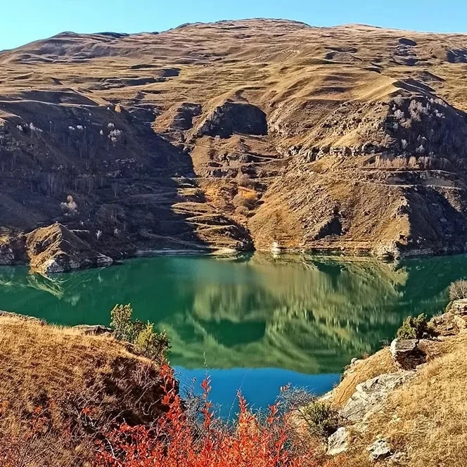 С первого взгляда оно кажется природным чудом: яркая бирюзовая вода, гладкая как зеркало поверхность и суровые горные склоны вокруг создают почти нереальный пейзаж. Не случайно местные называют его Былымским озером и считают настоящей жемчужиной региона. Но за этой красотой скрывается непростая история. Озеро имеет искусственное происхождение: когда-то здесь перекрыли реку Гижгит, образовав водоем, который использовали как хвостохранилище Тырныаузского вольфрамо-молибденового комбината. Именно этим объясняется необычный цвет воды и легенды о всей таблице Менделеева на дне. Сегодня производство давно закрыто, и природа постепенно возвращает себе эти места. Местные уверяют, что водоем очистился: здесь ловят рыбу, в воде встречается форель, а по берегам живут лягушки и птицы. Тем не менее, это все еще техногенный объект, и относиться к нему стоит с осторожностью. Озеро окружено живописными склонами с травами и скалами, а в разное время года выглядит по-разному: летом — яркое и контрастное, осенью — в золотых и багряных оттенках, зимой — с ледяной гладью насыщенного цвета. Рядом можно найти нарзанный источник и места с природными минералами, что добавляет локации особой атмосферности. Дорога к озеру относительно простая: от трассы до него ведет грунтовка длиной около трех километров, по которой можно проехать даже на легковом автомобиле. Пеший маршрут также доступен и занимает несколько часов с прогулкой вокруг озера.