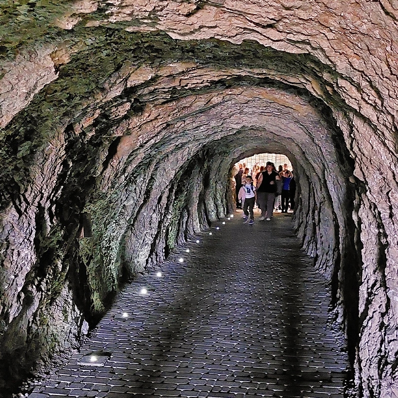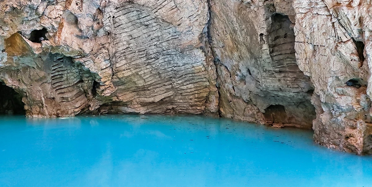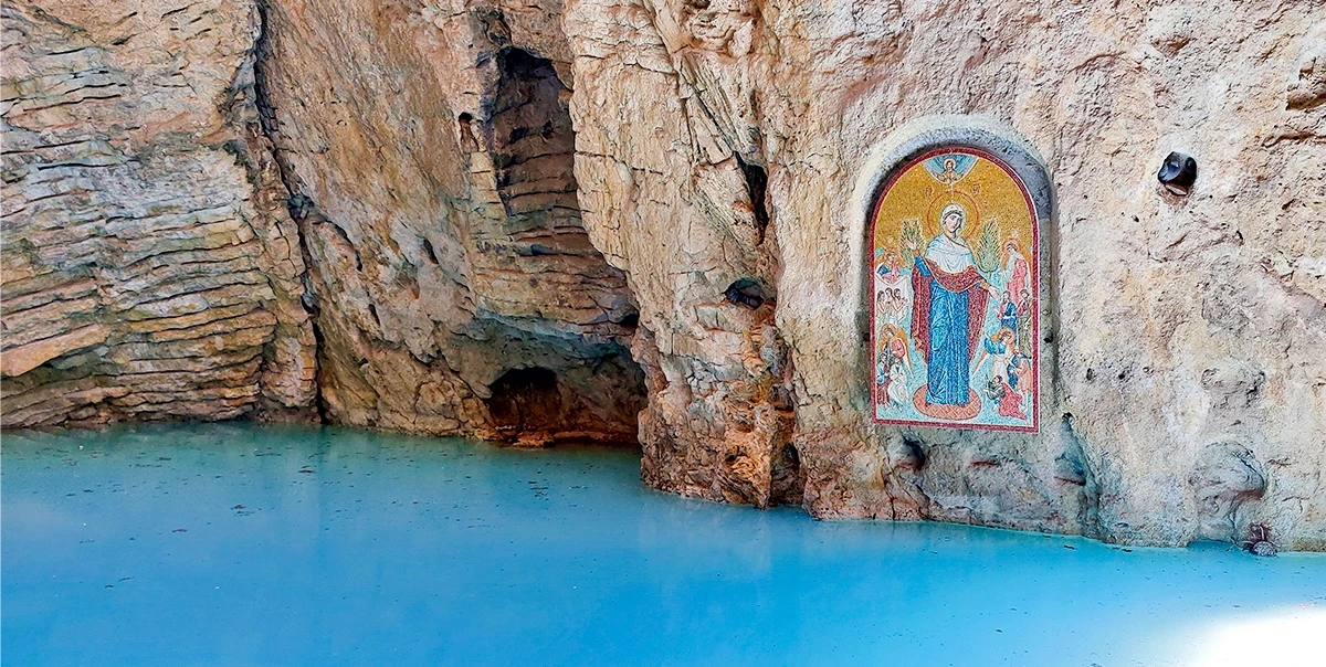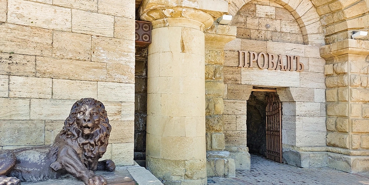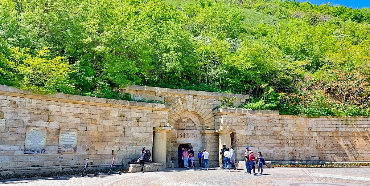 Одна из самых известных достопримечательностей Пятигорска, спрятанная в недрах горы Машук. Это природная карстовая пещера с подземным озером, которое стало символом города и легендой всего Кавказа. История Провала уходит в XVIII век, когда учёные впервые попытались изучить необычную воронку с бирюзовой водой. Озеро образовалось естественным образом: минеральные воды, насыщенные сероводородом, постепенно размывали известняк, пока не произошёл обвал и не образовалась воронка глубиной около 11 метров и высотой пещеры более 40 метров. Именно сероводород придаёт воде тот самый насыщенный голубой оттенок, который кажется почти нереальным. При этом температура воды держится в пределах +25…+40 градусов, поэтому даже зимой озеро остаётся тёплым. Сегодня к озеру ведёт тоннель длиной около 60 метров, пробитый в середине XIX века. Пройдя по нему, вы попадаете в полутёмное пространство с мягкой подсветкой, где внизу открывается вид на дымчато-бирюзовую воду. Атмосфера здесь почти мистическая — влажный воздух, лёгкий запах серы и ощущение глубины под ногами. С Провалом связано множество легенд. Самая известная рассказывает о драконе, якобы живущем в глубине пещеры. По ночам он вылетал из недр горы и кружил над городом в поисках добычи. Неудивительно, что раньше местные называли это место «адской бездной». Популярность Провала усилилась после выхода романа «12 стульев» — именно здесь Остап Бендер продавал билеты туристам. Сегодня у входа стоит его скульптура, ставшая одной из самых узнаваемых фототочек Пятигорска. Рядом с тоннелем можно подняться наверх и посмотреть на Провал сверху — через ограждённую воронку. А неподалёку находятся знаменитые «бесстыжие ванны», где можно окунуться в тёплые минеральные воды.