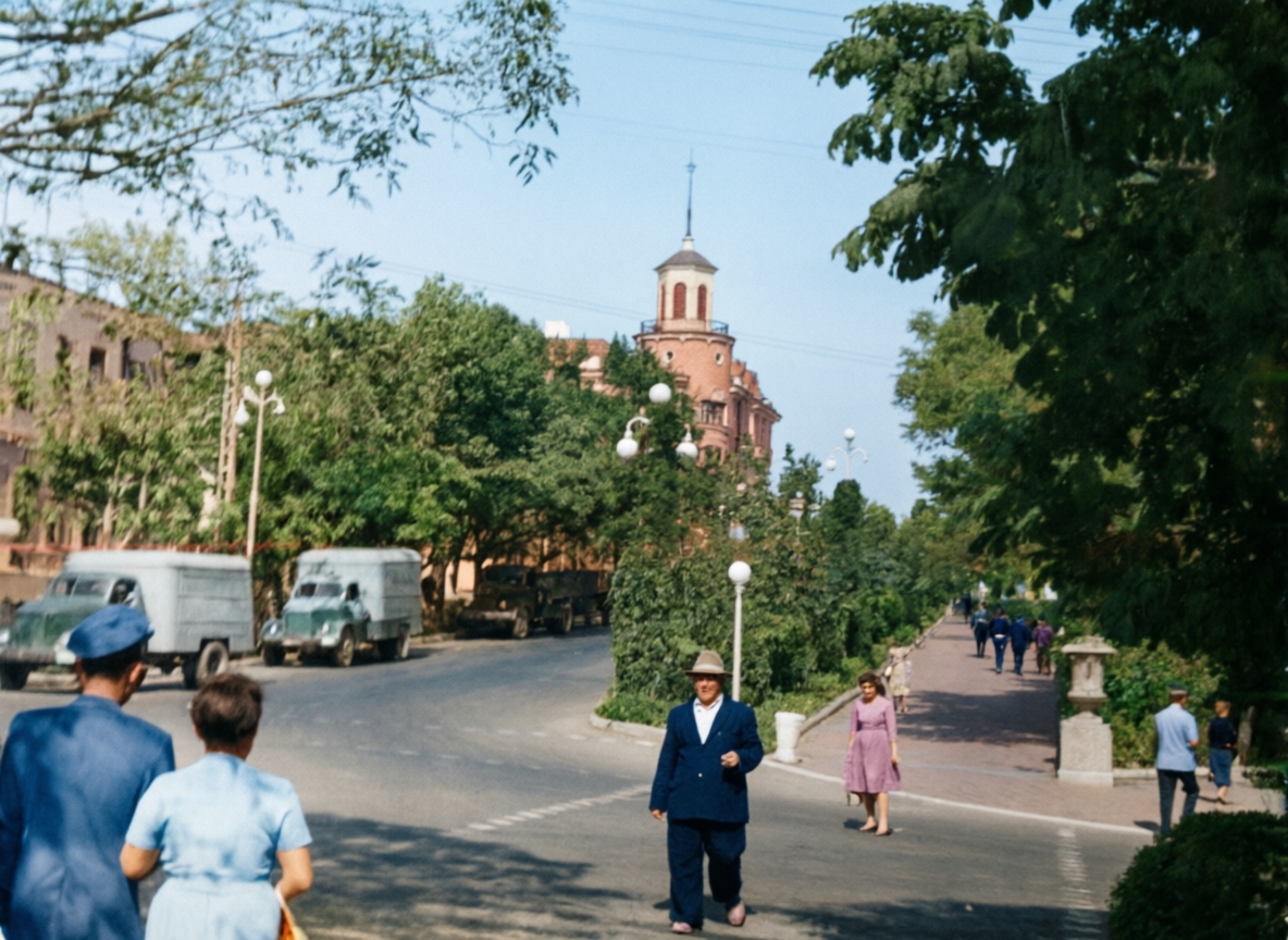 Пересечение проспектов Октябрьской Революции и Карла Маркса. г. Ставрополь. 1950-е.