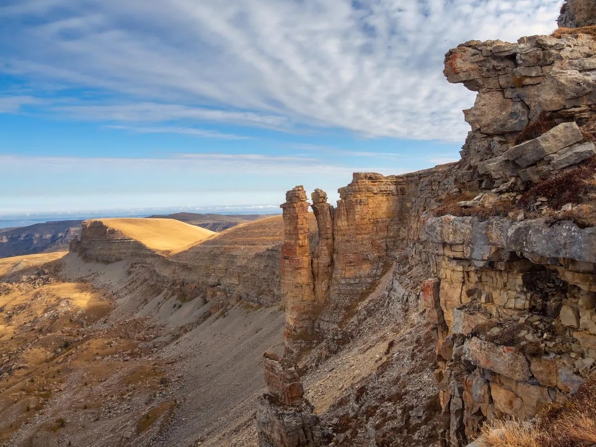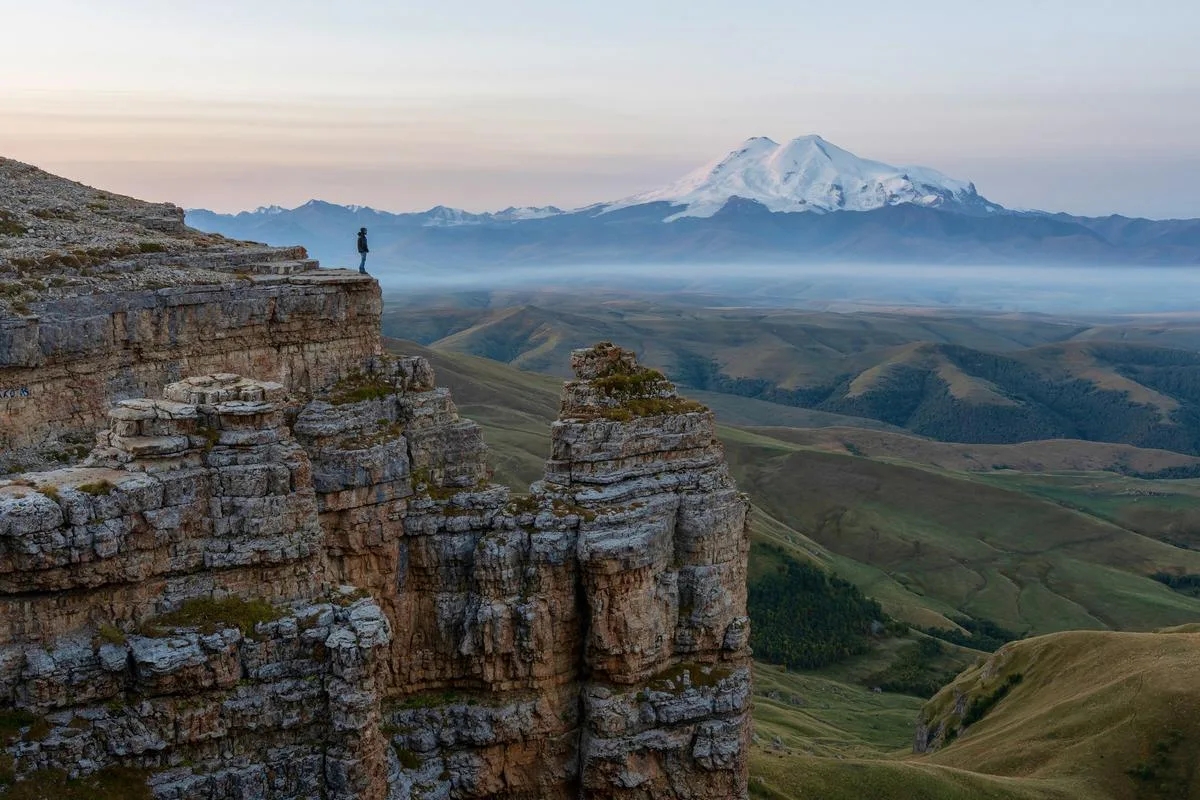 Это огромное плато расположено на высоте около 2600 метров, откуда открывается один из лучших видов на Эльбрус. Причем расстояние до него всего около 30 км, поэтому гора здесь выглядит особенно мощно. | |