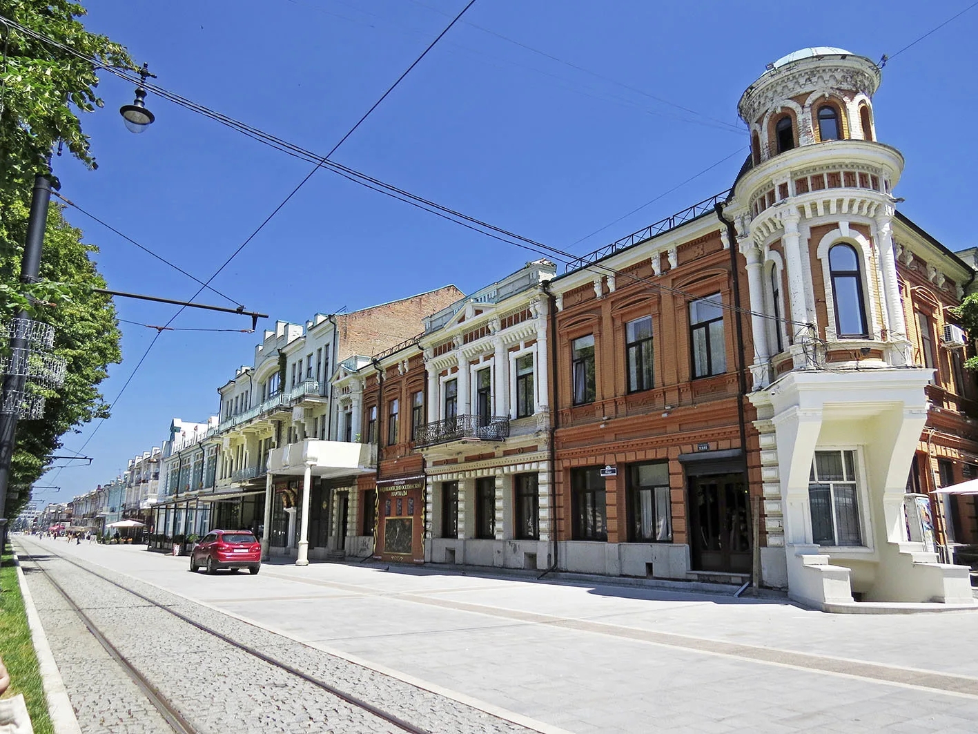 Эта улица словно застыла во времени. Старые особняки с лепниной, кованые балконы, витрины в классическом стиле и неспешный ритм — всё это создает ощущение, будто гуляешь не по России, а где-то в Европе.